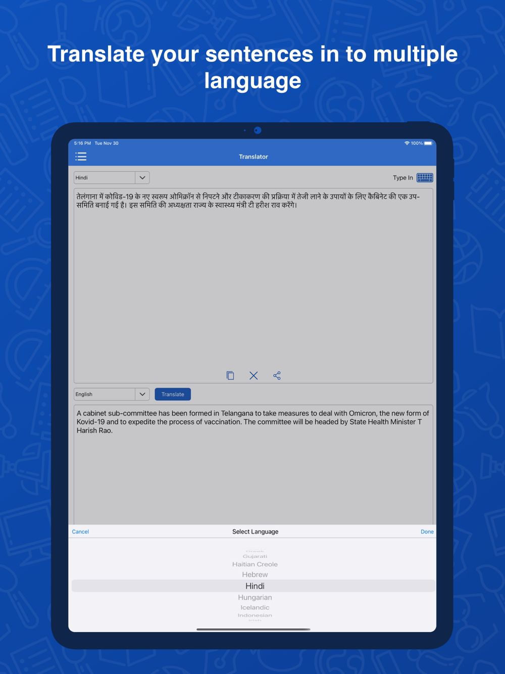 5- Our app also provides multi-language translator functionality.