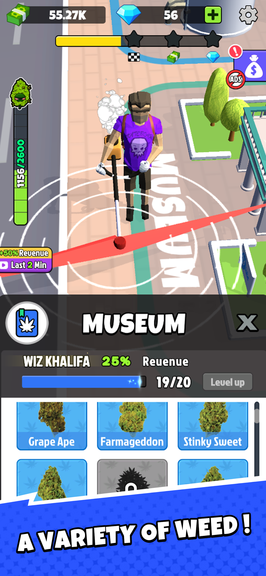 You can harvest different strains of Marijuana in this game, by cutting marijuana and selling marijuana in regular channels, letting marijuana contribute to the world's medical industry. If you want to increase the efficiency of harvesting cannabis, you can upgrade your property and tools. And soon you will become very rich.