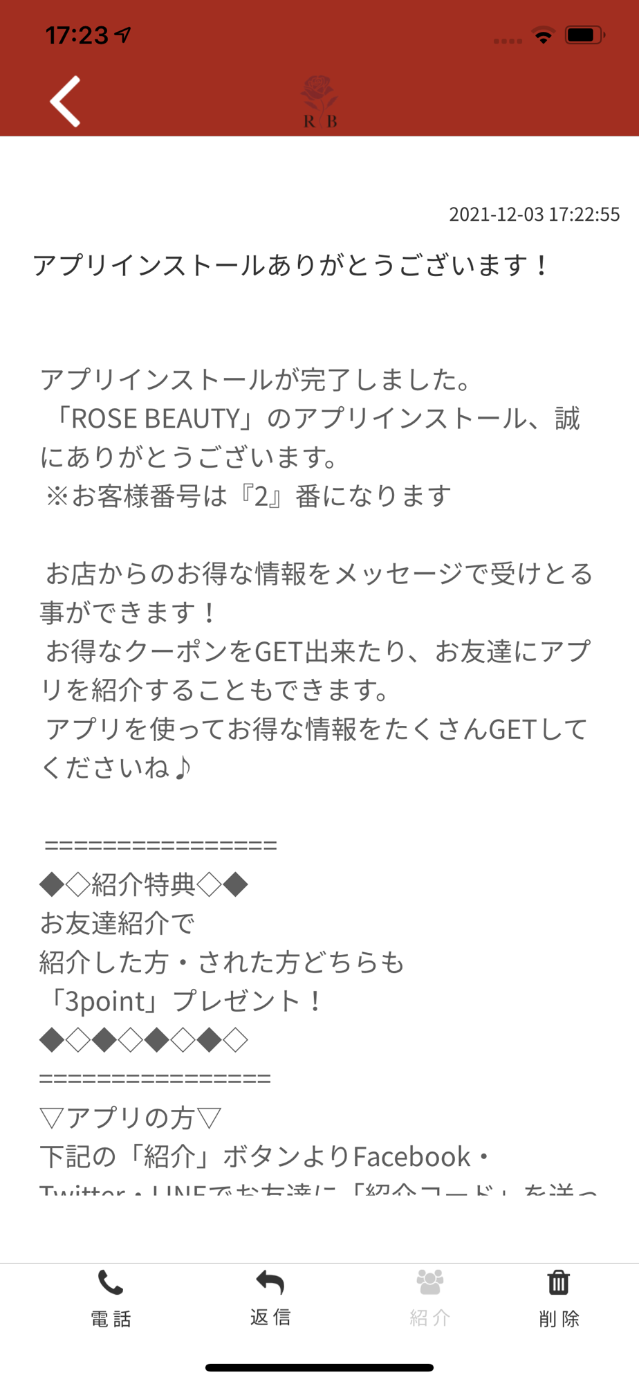 ROSE BEAUTYのアプリをSNSを通じてお友達に紹介する事ができます。