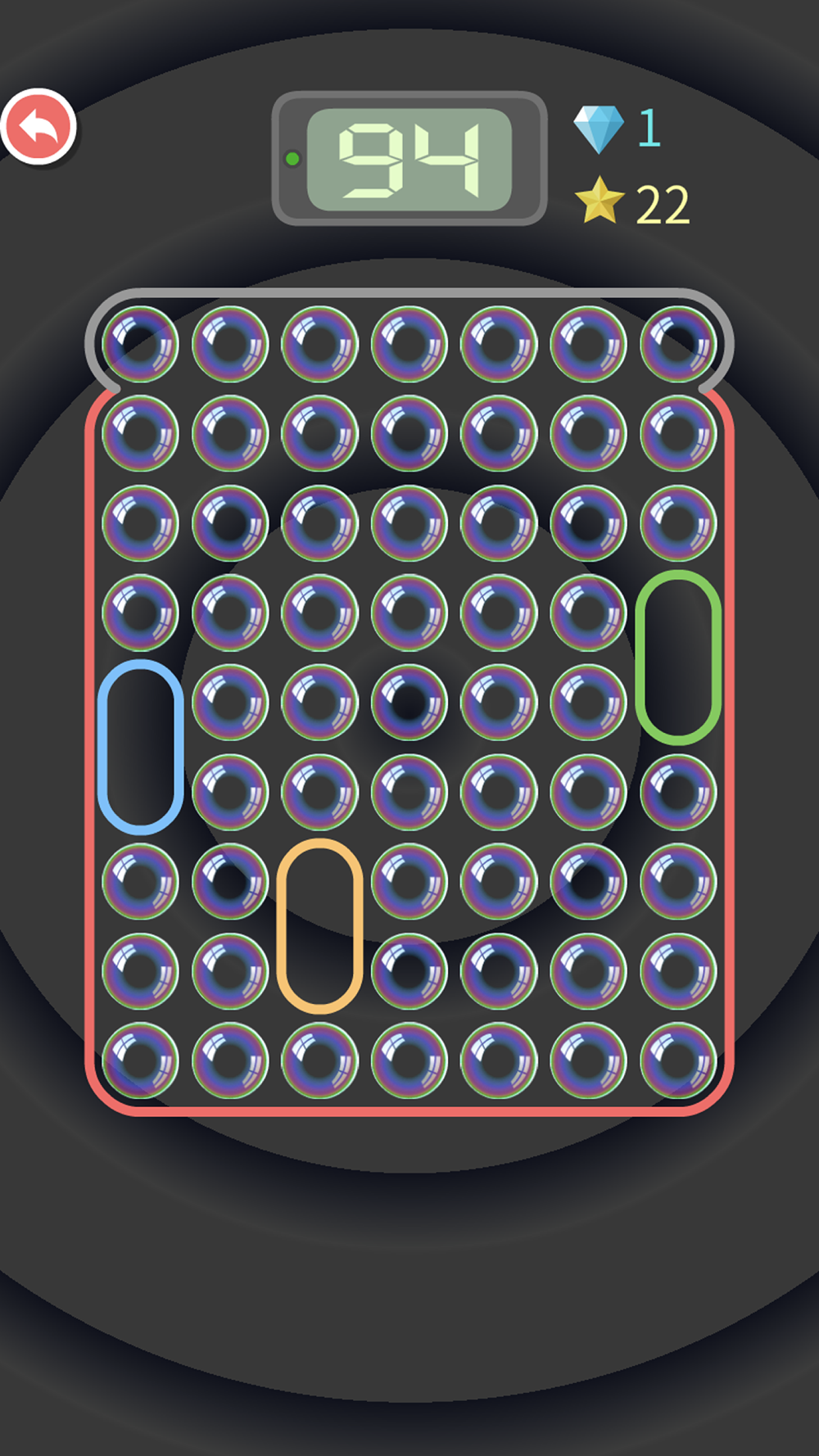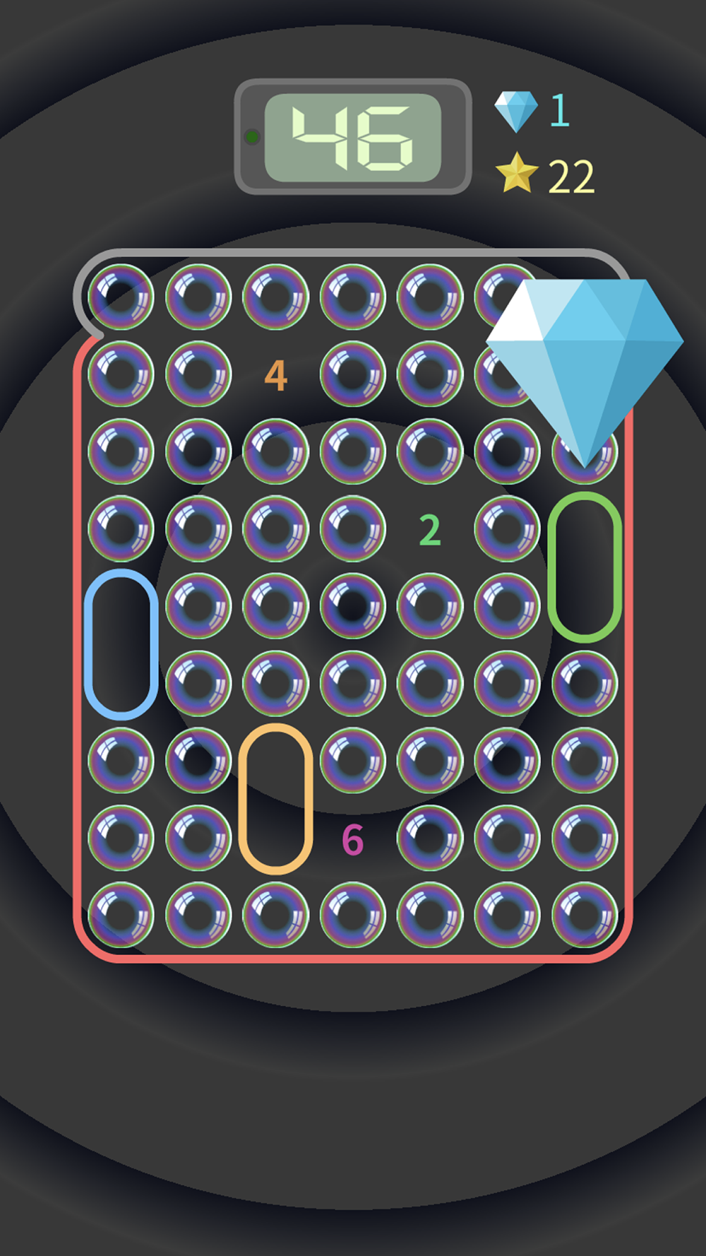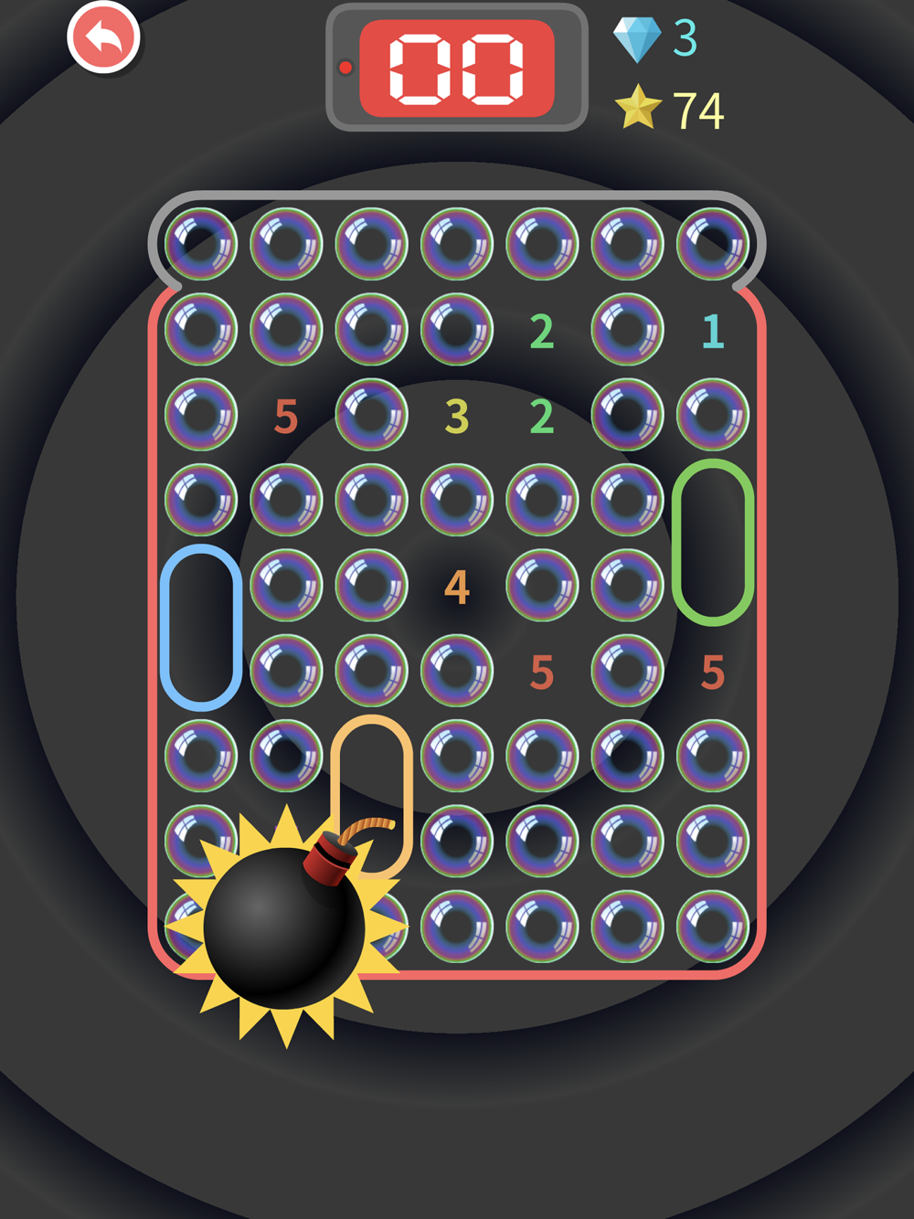 Click on a bubble, subtract 10 seconds from the countdown, and the displayed number represents the number of bubbles from the bomb;