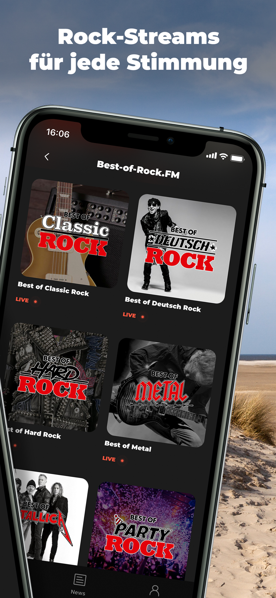Und die App rockt noch mehr: Die besten Tracks und die größten Rock-Acts der unterschiedlichsten Rock-Genre – Alternative Rock, Classic Rock, Metal, Hard Rock, Deutsch Rock und und und! Dazu die besten Neuerscheinungen, der beste Rock-Mix der 80er und 24/7 Non-Stop-Live-Feeling – exklusiv in den Best-of-Rock.FM-Streams: mehr Rock geht nicht!