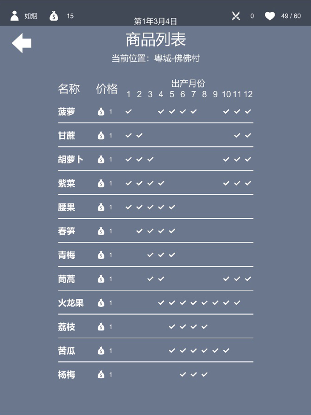 [商品市场]每个地区的出产商品和需求商品都不一样,而且商品都是季节性的哦