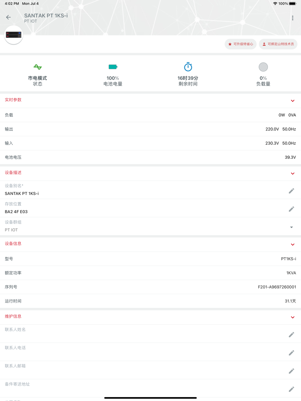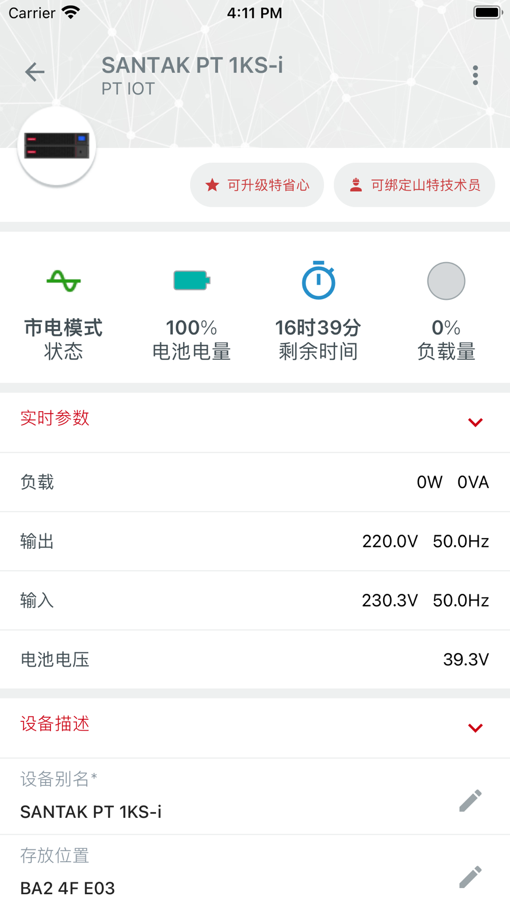 山特云平台智能电力管理专家应用软件,简称山特加APP(Santak plus APP) 可轻松实现对UPS的远程查看和控制,让用户轻松管理自己的设备。同时山特加APP提供安全的通讯机制,使用非对称加密机制确保数据传输过程稳定无虞,确保远程访问设备的安全可靠。山特加APP非常适合UPS个人使用者以及寻求简单高效的电力监控方案的中小型企业、UPS布局分散的零售企业。