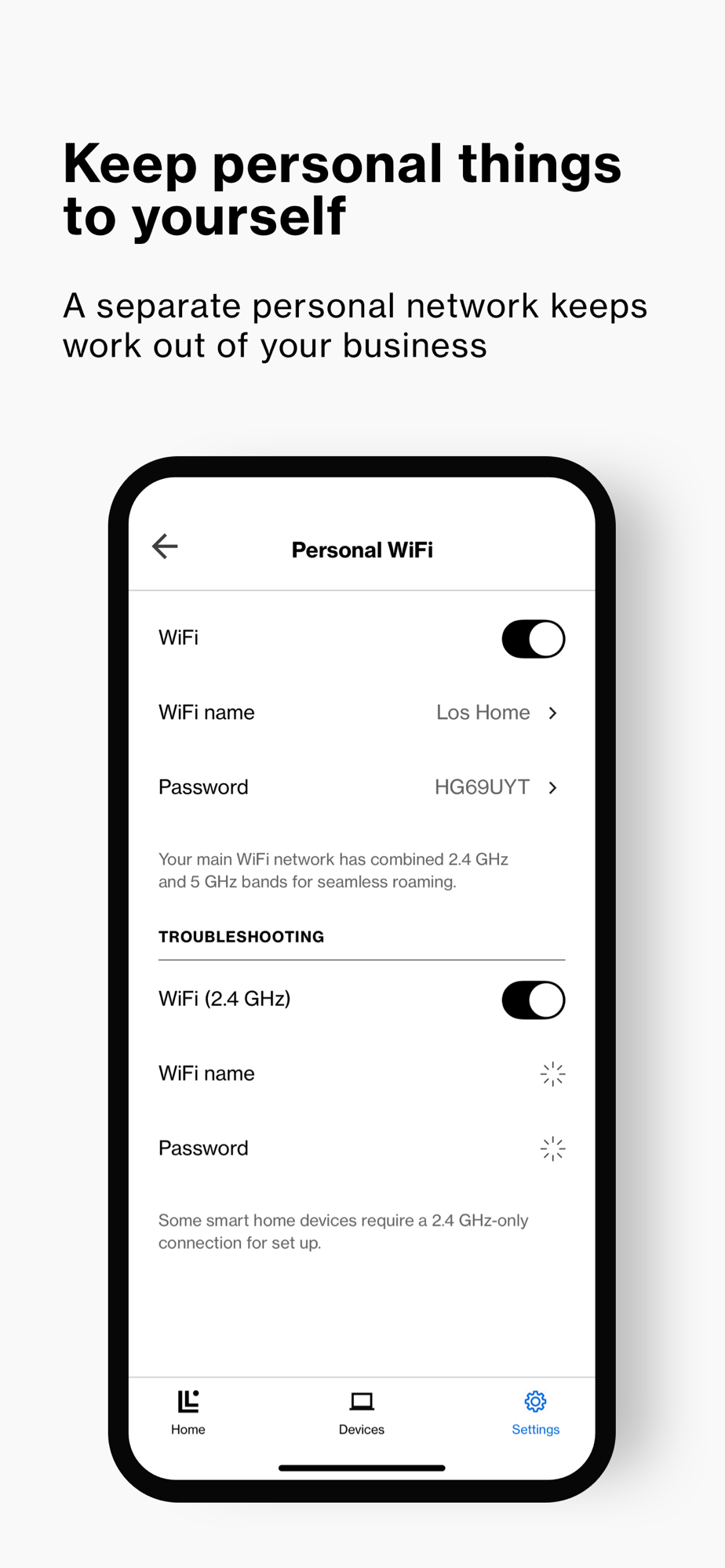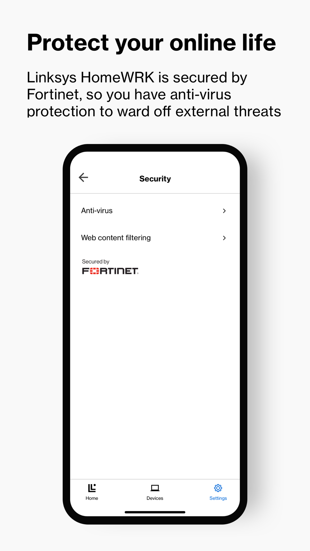 The Linksys HomeWRK app is the control center for a new kind of WiFi for remote and hybrid workers. Linksys and Fortinet have teamed up to offer a remote, turn-key firewall networking solution. Access the Linksys HomeWRK app anywhere you have an internet connection to manage your personal home WiFi. Check connected devices, set up guest access, or tinker with web content filters. You can also turn ON and OFF the work WiFi networks managed by your employer.