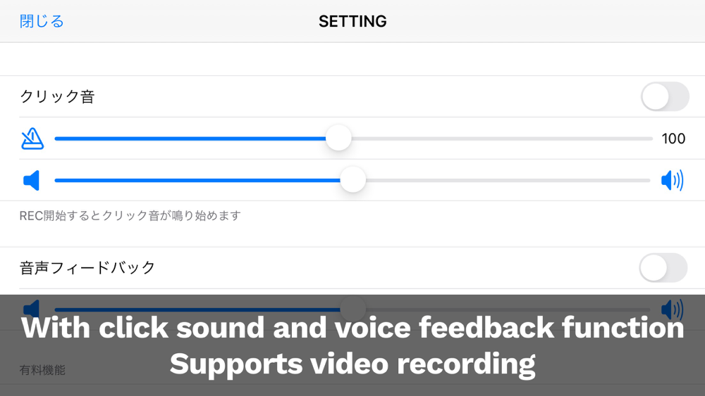 From SETTINGS, turn on the click sound and set the tempo etc. for the volume.