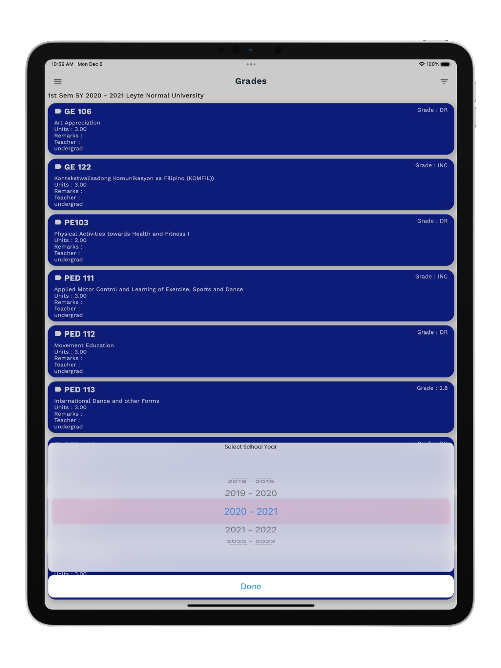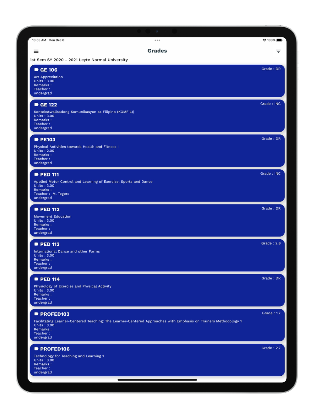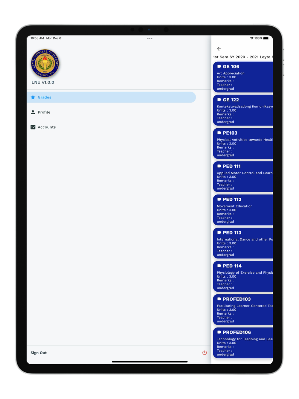 This app is specifically for LNU (Leyte Normal University) students for them to view their grades, accounts, and profile