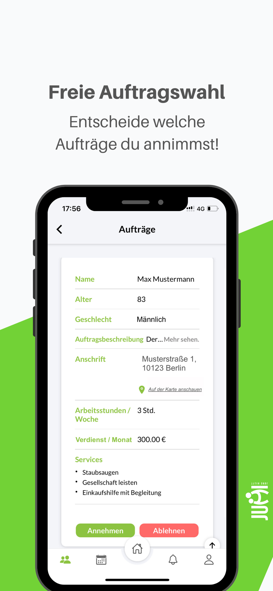 In der App findest du unterschiedliche Aufträge in deiner Nähe. Unterstütze Pflegebedürftige Menschen in deiner Nachbarschaft.