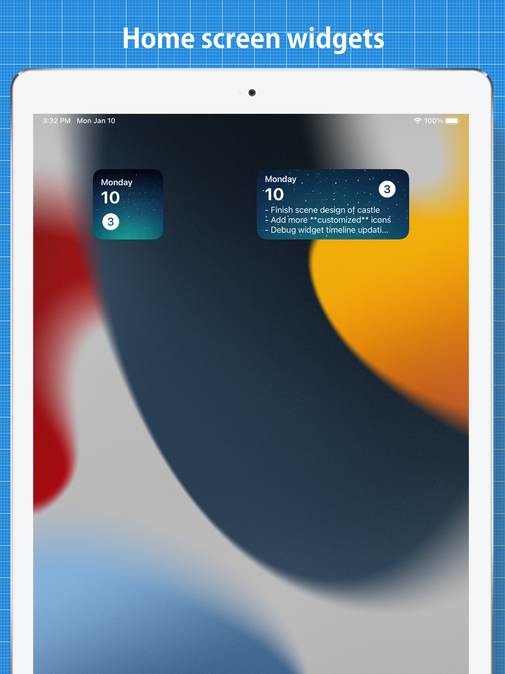- Focus timer to help you focus on a single task, displayed on lock screen and the Dynamic Island (on supported iPhone devices)