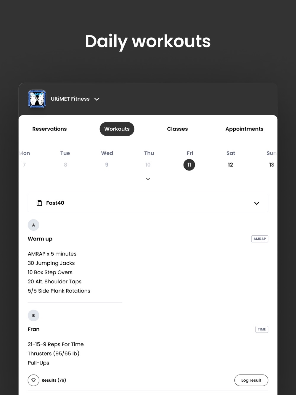For members of UltiMET Fitness to reserve their place in a class, sign up for gym events, and general account management like updating headshots and credit card on file.