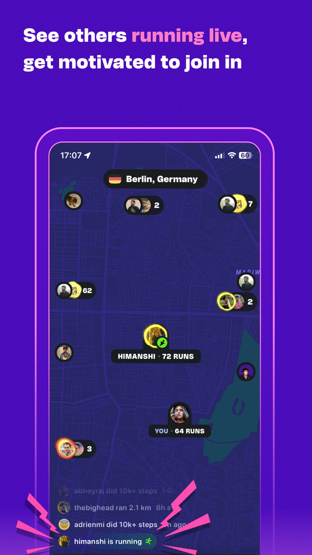 GET MOVING TOGETHER: Join our community of runners from around the world. Share your progress, compete with friends, and get inspired by others. Running’s never been more fun than when you do it with others
