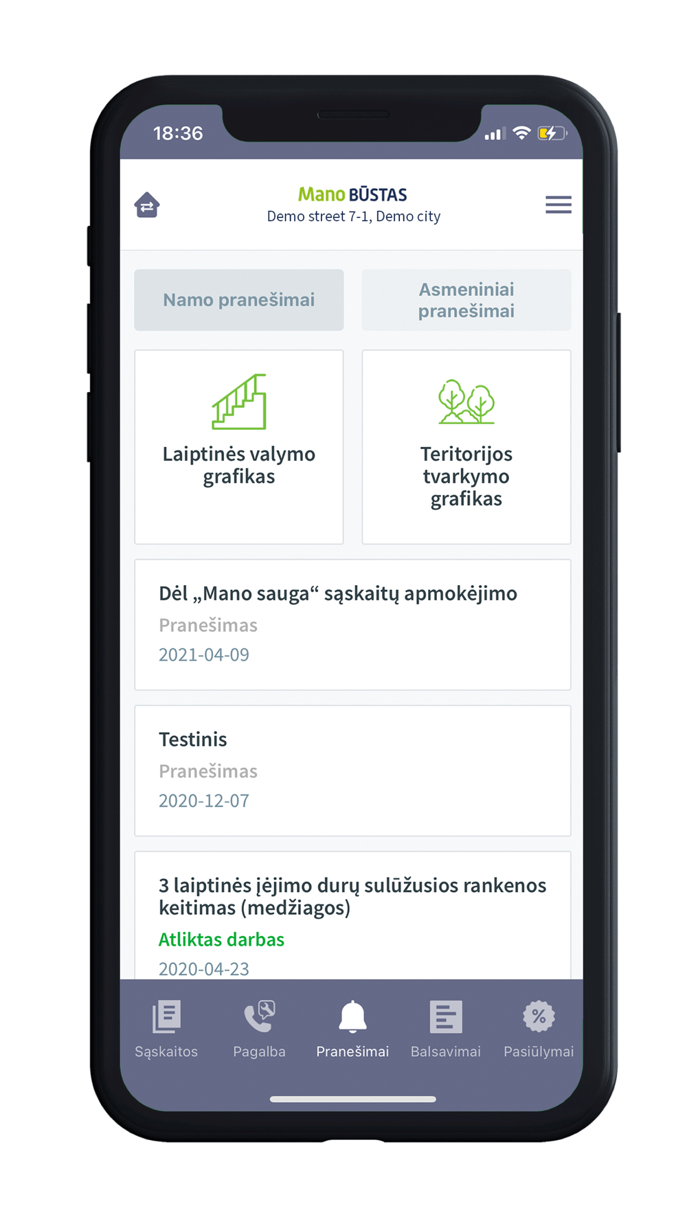Raskite visą reikiamą informaciją, registruokite pranešimus vos kelių mygtukų paspaudimu, dalyvaukite balsavimuose ir apklausose, sumokėkite sąskaitas, susisiekite su mumis Jums patogiausiu būdu.