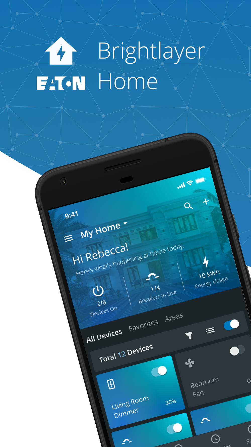 The Brightlayer Home app works with Eaton smart breakers and wiring devices. Easily view power usage, control connected devices remotely and make more informed energy decisions.