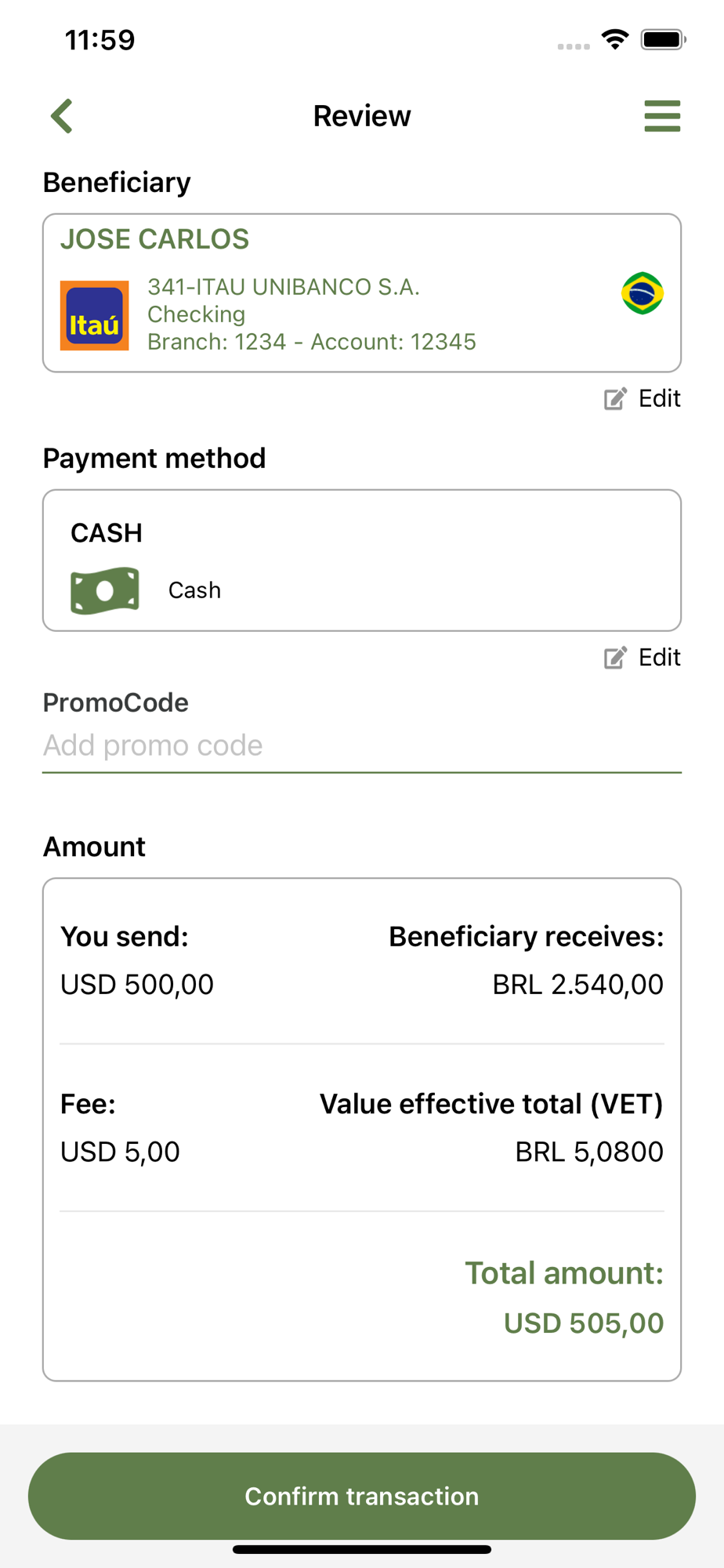 • Pay for your money transfers using your bank account, credit card, debit card and cash.