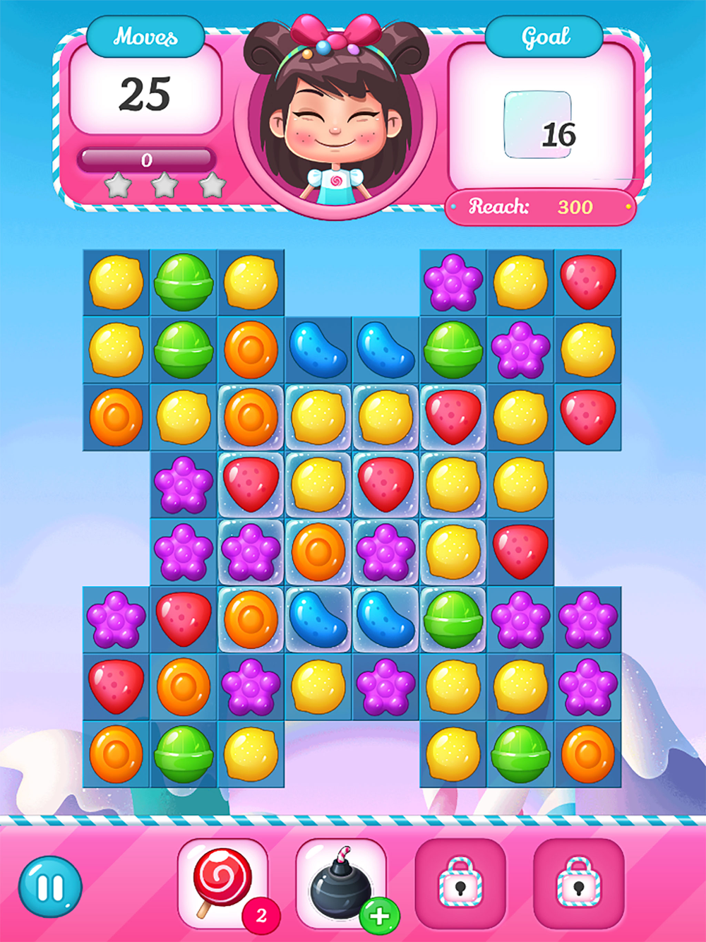Let us come to the lovely and charming sweet world, together feel the exciting experience of candy blasting! The operation of the game is very simple, just need to swap to move candy, put 3 candy of the same color side by side in the same row, they will explode to shatter, help you get a higher score. If you can eliminate more than 3 candies at a time, your score will be upgraded.