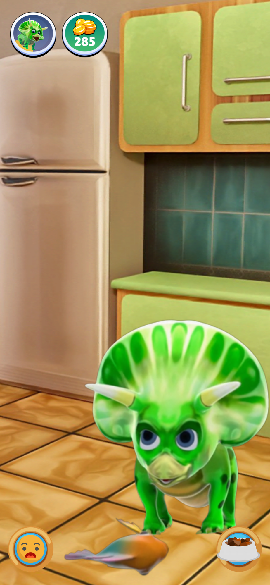 Play with triceratops Mi-mi. Spend time with your pet. Play with him, feed him and put him to bed