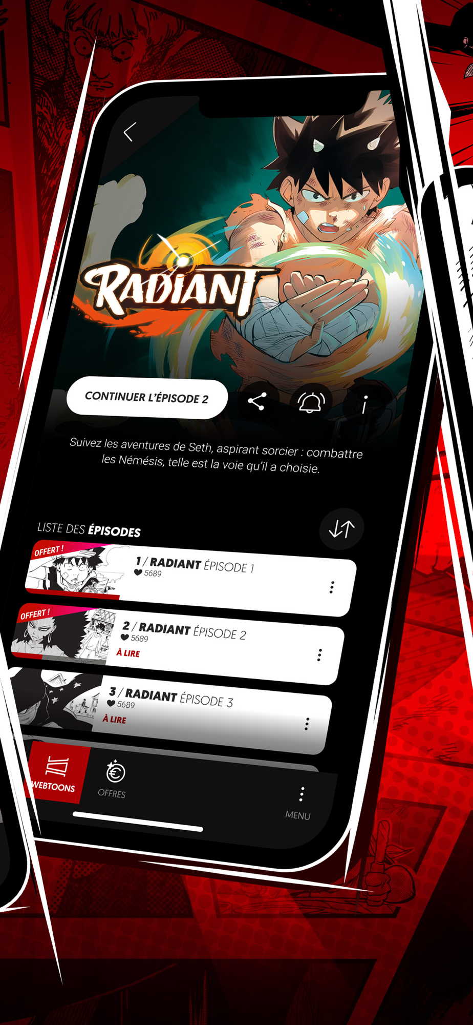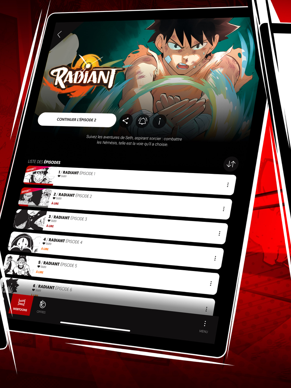 Découvre les aventures inédites du Comte Lance Dur ou laisse-toi embarquer dans l’univers magique de Radiant, intégralement adapté au format webtoon !