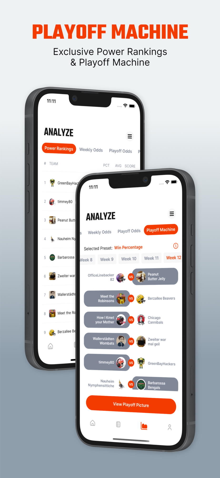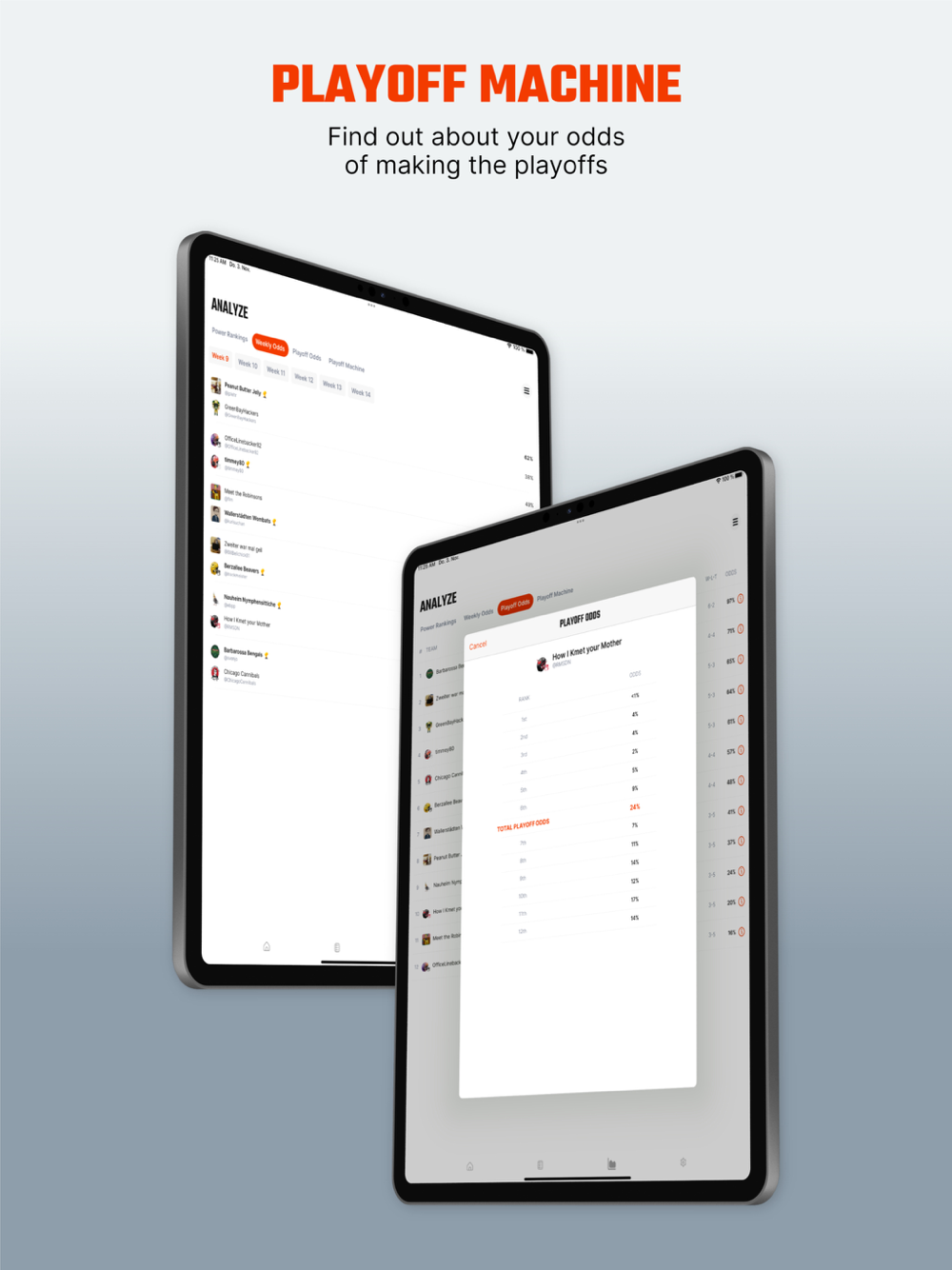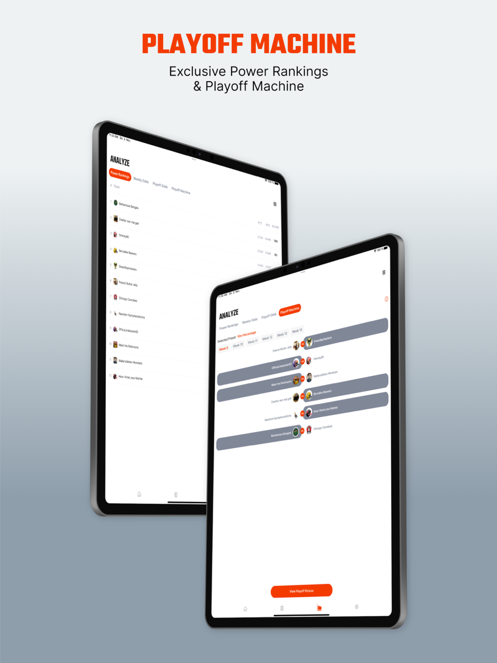 Import your leagues to see customized power rankings and playoff odds.