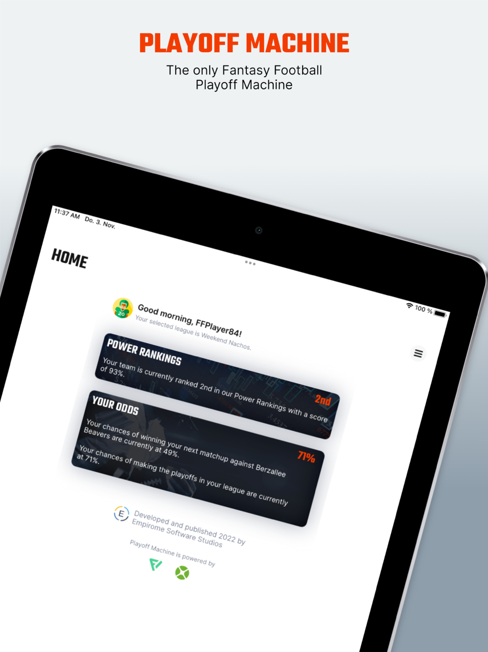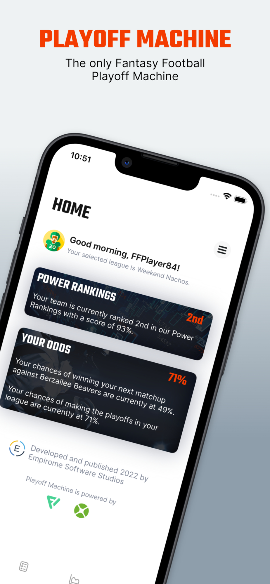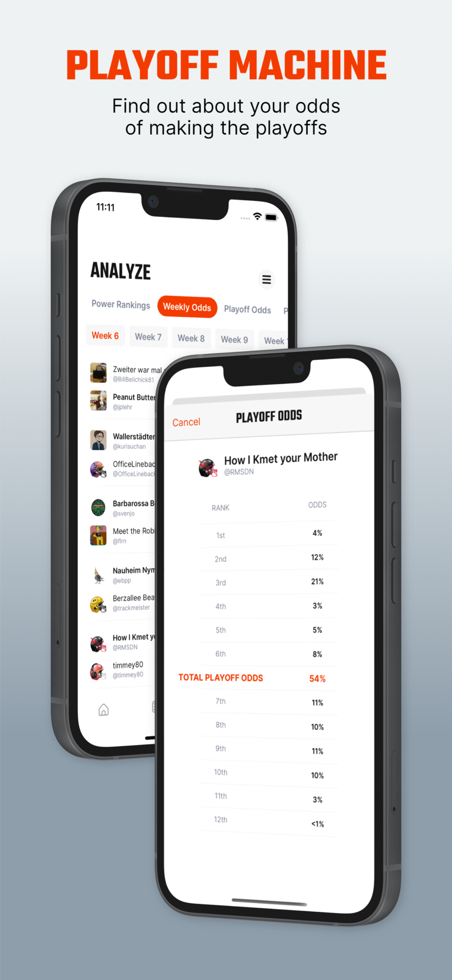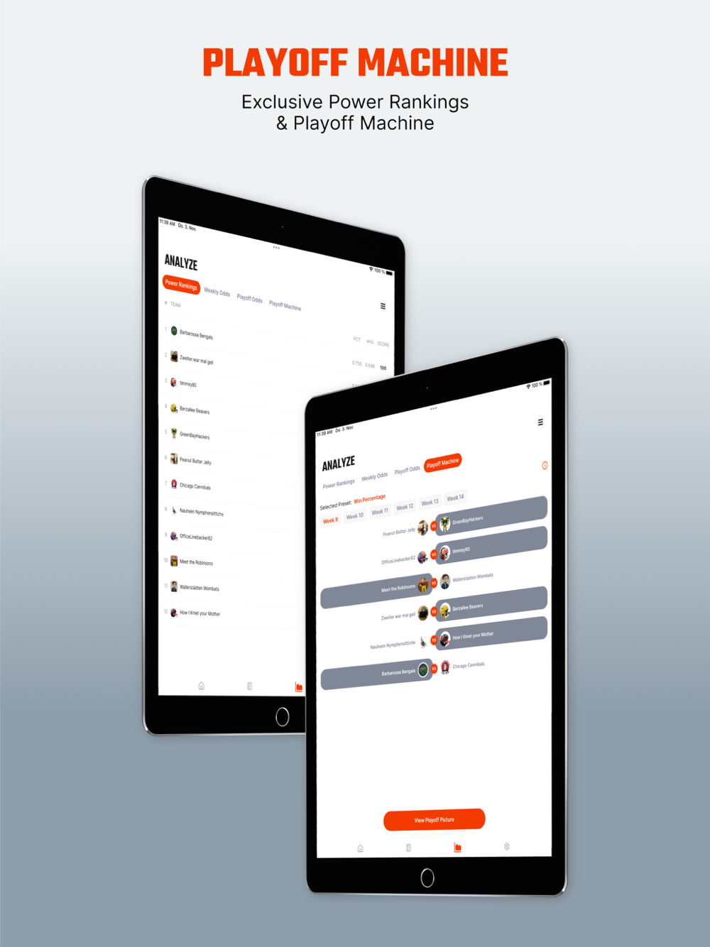 Import your leagues to see customized power rankings and playoff odds.