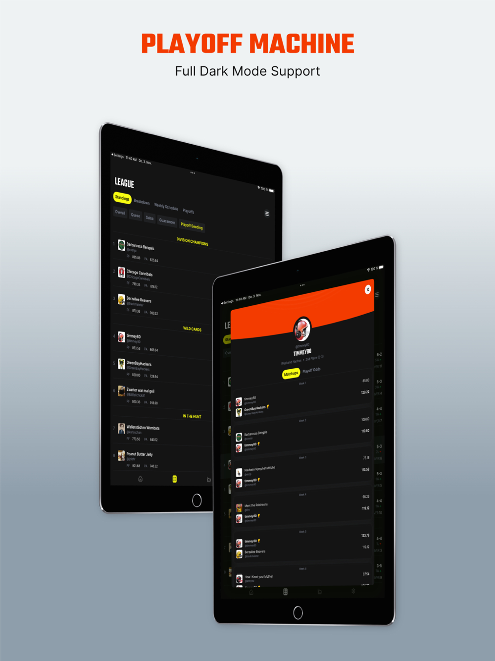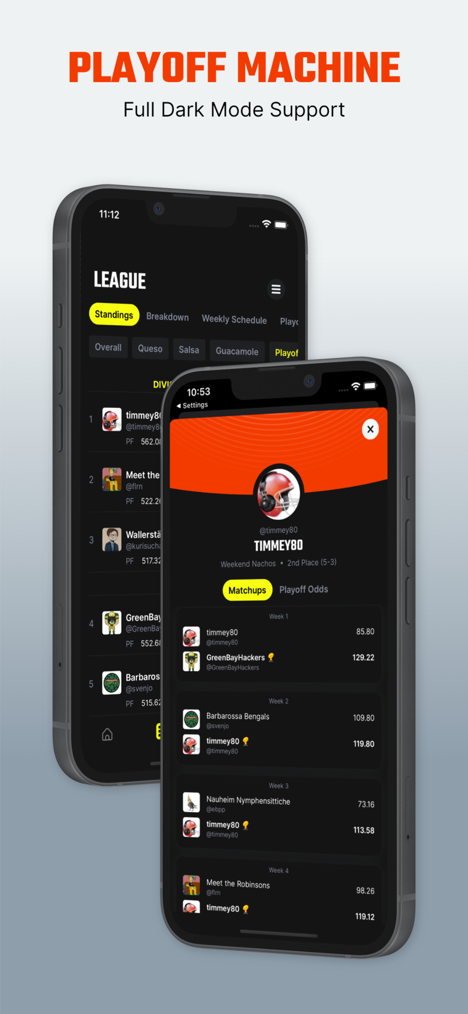 Find out what the odds of winning your next matchup are. Or your odds to make the postseason.