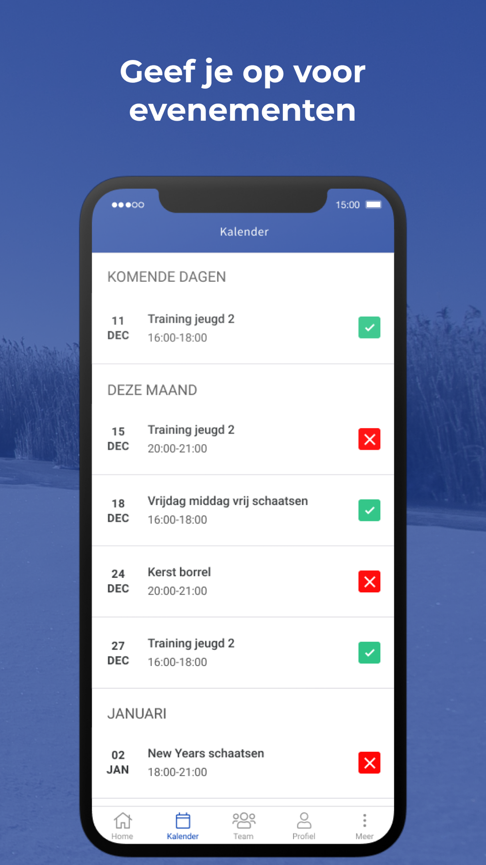 - Geef jouw aanwezigheid door voor wedstrijden, trainingen en evenementen.