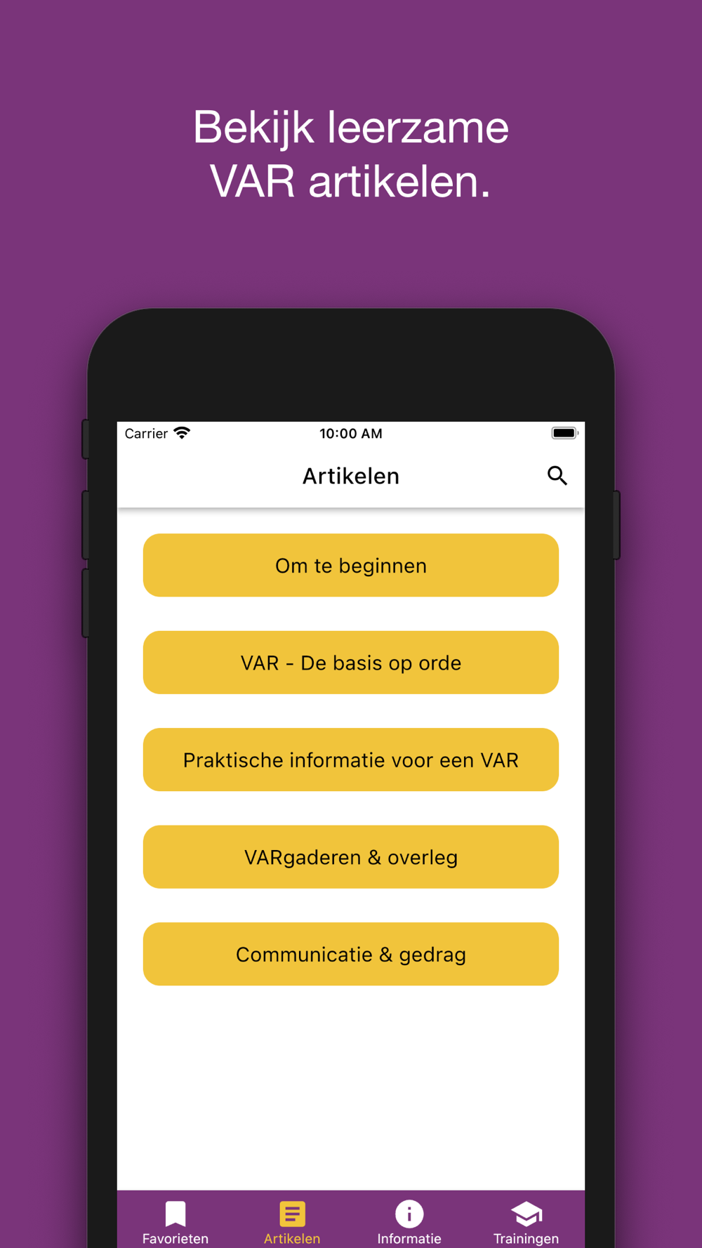 Deze app bevat praktische informatie voor VAR-ren die graag op een professionele wijze hun werk willen uitvoeren.