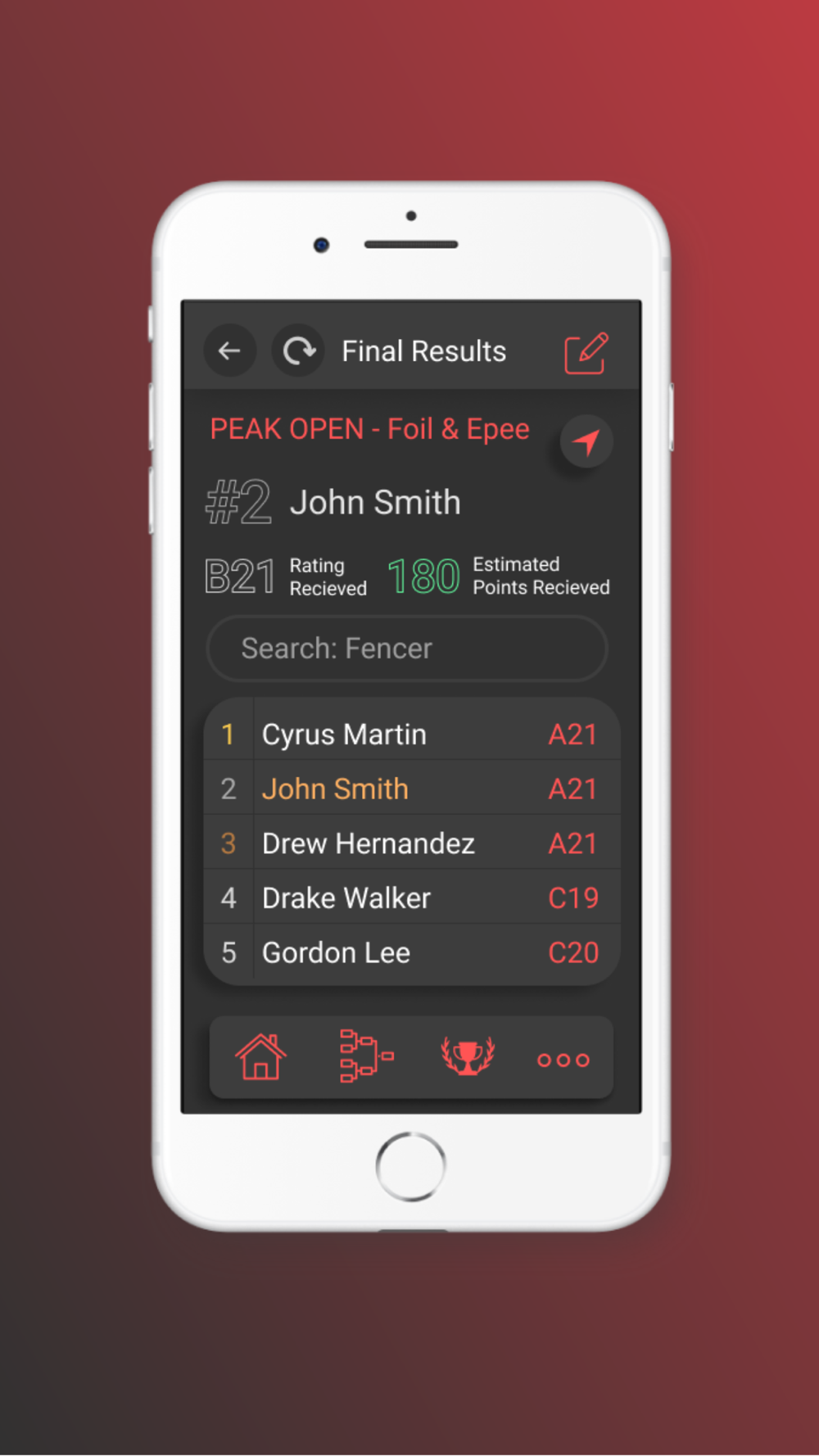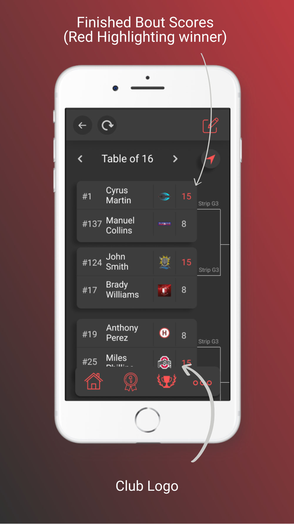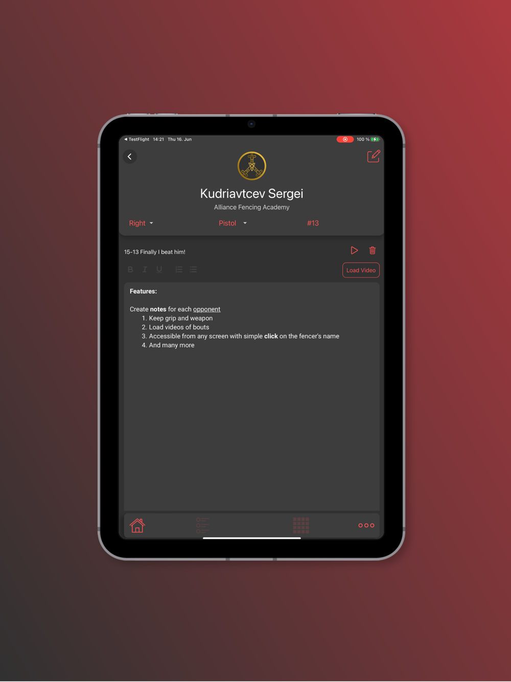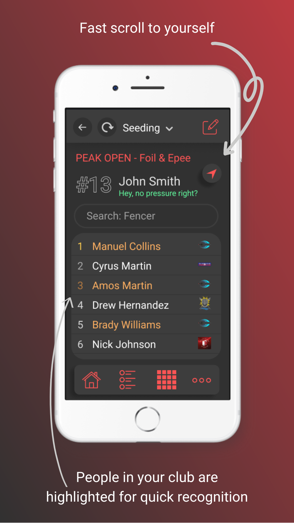 - Personalized notes organized by fencer (access by simply clicking fencers name from any screen)