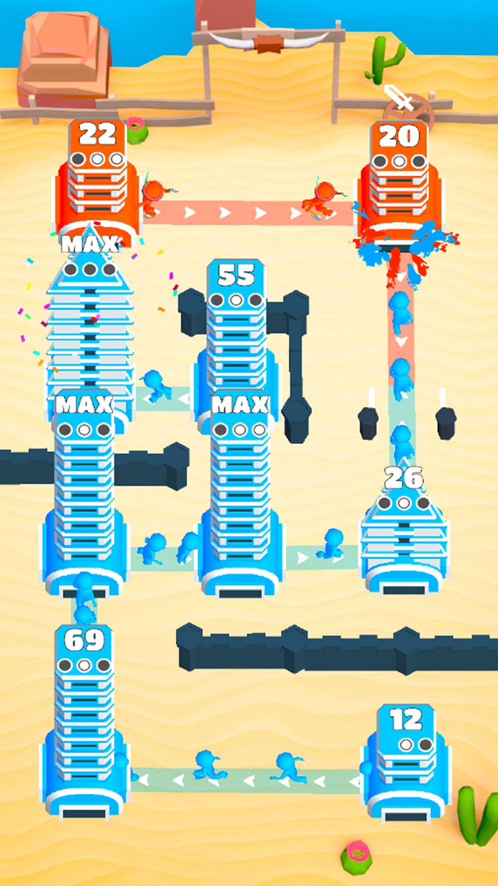 Link all your towers together to grow taller. Increase your army to crush your opponents. Make up your own action strategy and defeat the others!