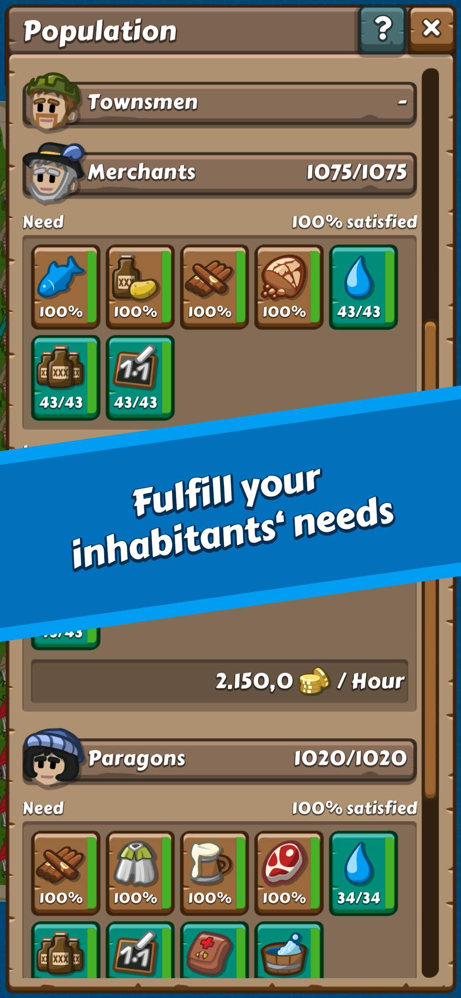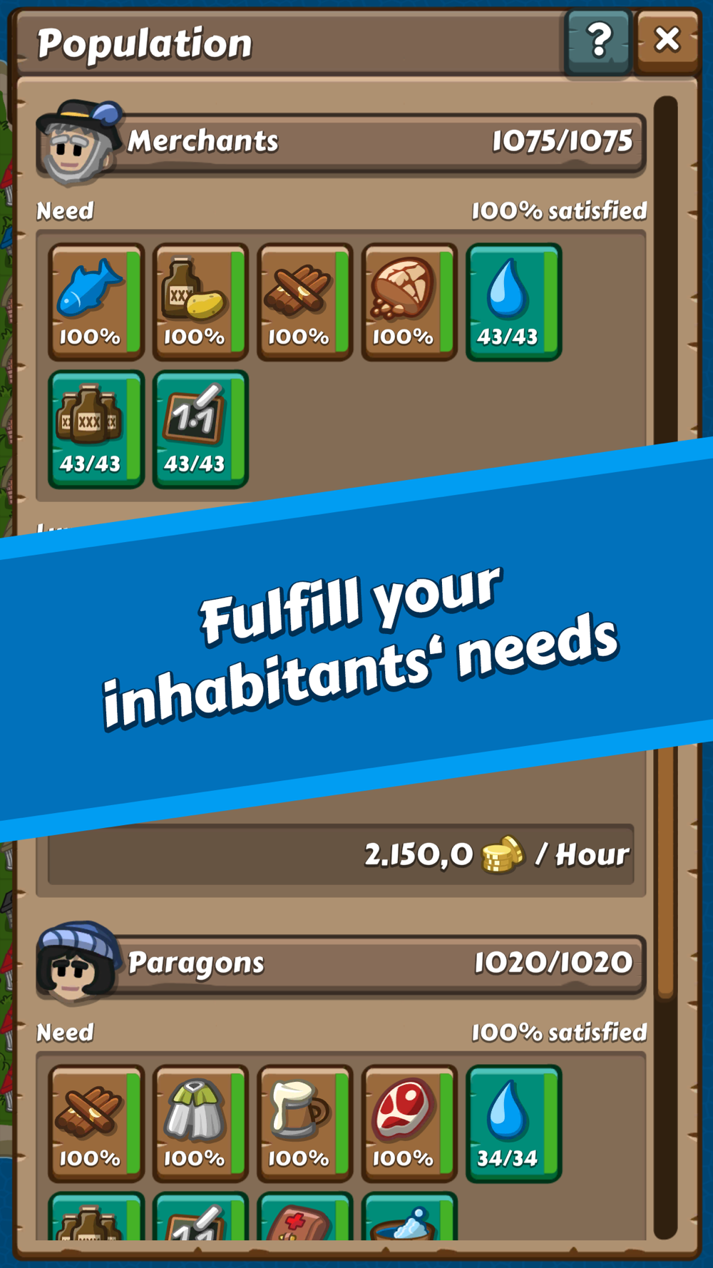 Paragon Pioneers is a city-building idle game in which you discover, conquer and then build on islands to fulfill the needs of your inhabitants. Even with limited time to play you can enjoy this deep simulation game and follow one of the countless ways to optimize your empire. Build an impressive palace and go down in history as Paragon's most successful leader.