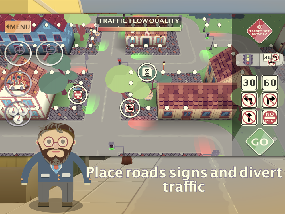 You will need to optimize traffic flow. Preprogram traffic light patterns, place road signs to divert or block traffic, increase speed where is necessary, hit GO, and watch the traffic flow.