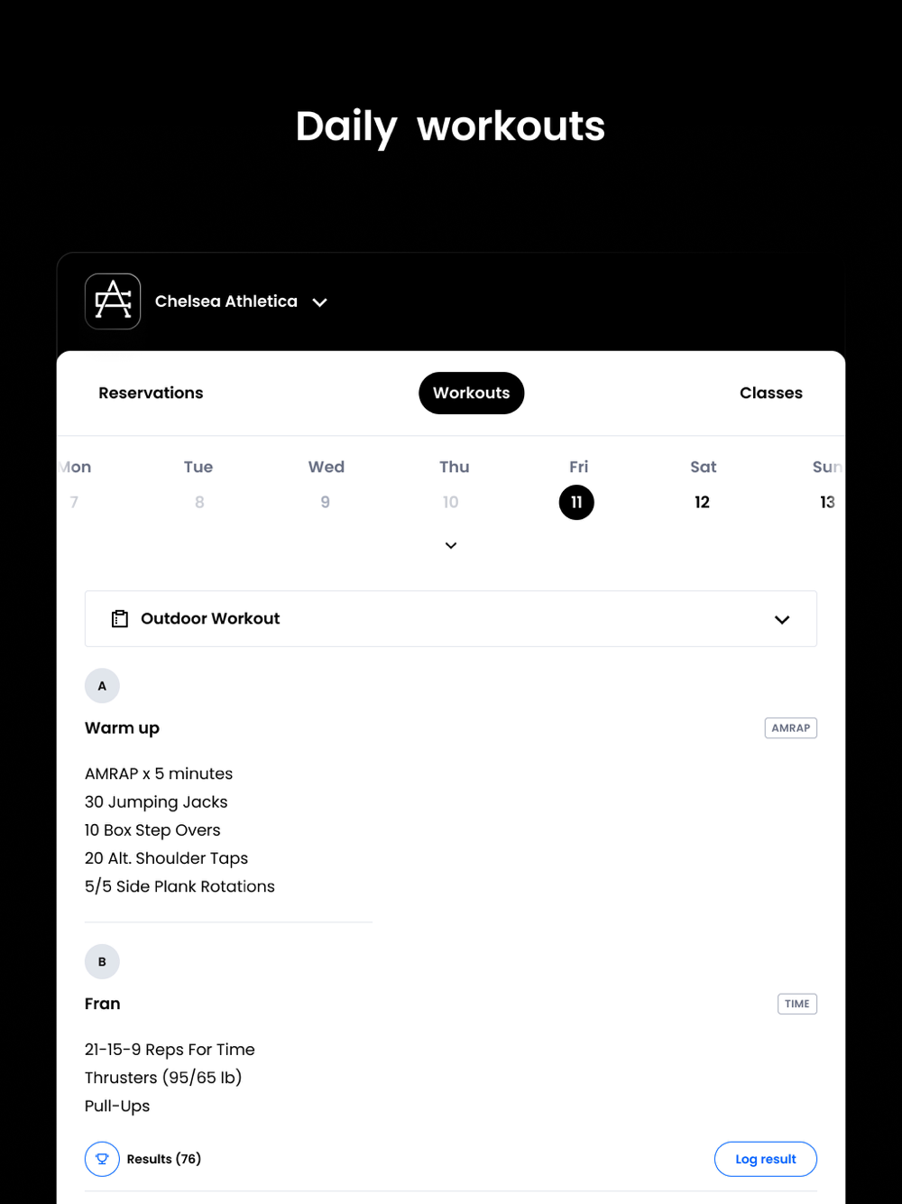 For members of Chelsea Athletica to reserve their place in a class, sign up for gym events, and general account management like updating headshots and credit card on file.
