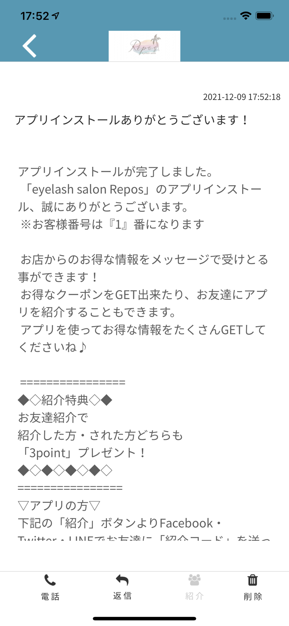 ReposのアプリをSNSを通じてお友達に紹介する事ができます。