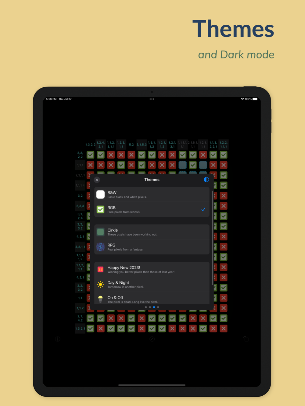 - Once a row/column is completely filled with pixels, its clue text changes color: