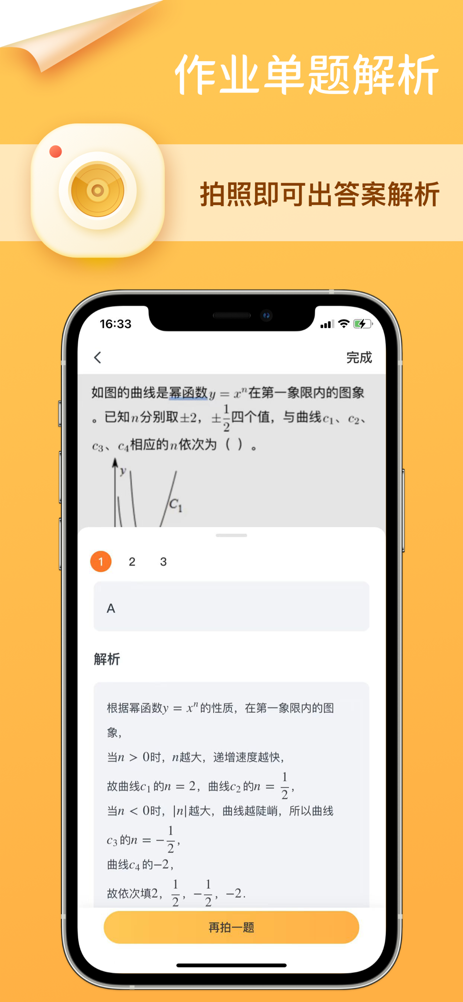 1、单题解析:拍摄照片上传即可一键出答案看解析,一次框选一题进行搜索