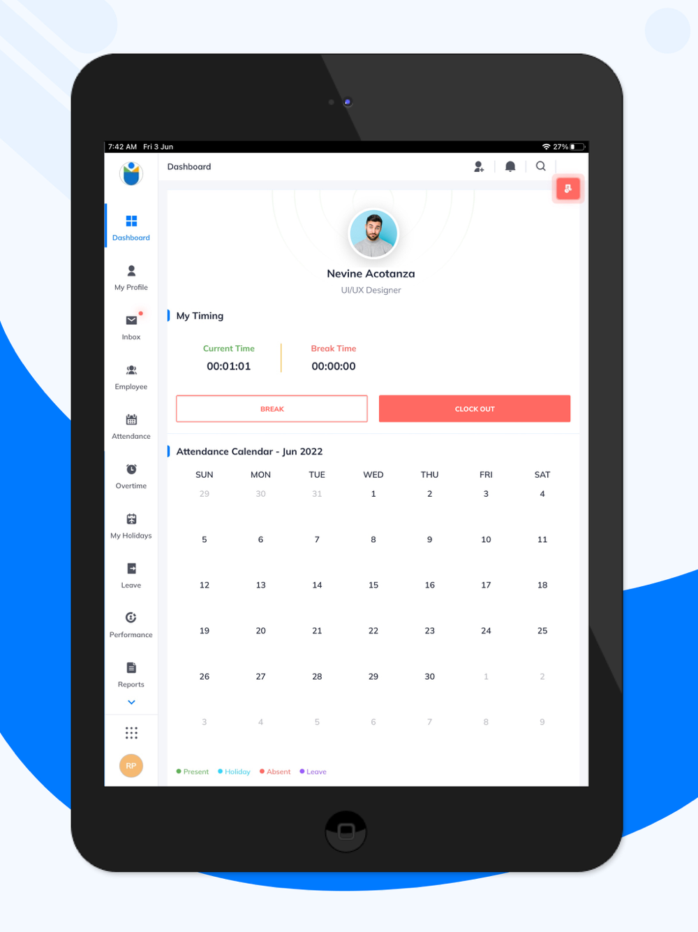 It comes with attendance tracking to get a precise Clock In/Out activity analysis. It also allows requests for time changes and gets it approved.