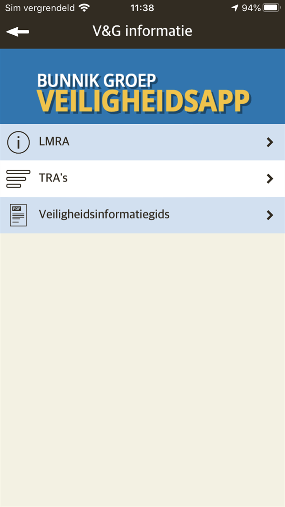 Dit is de Veiligheidsapp van Bunnik Groep. Hierin staat alles over wat te doen bij onveilige situaties en kunnen onveilige situaties gemeld worden. Regelmatig wordt er nieuwe informatie over veilig werken in deze app geplaatst en er kunnen werkplek inspectie worden uitgevoerd.