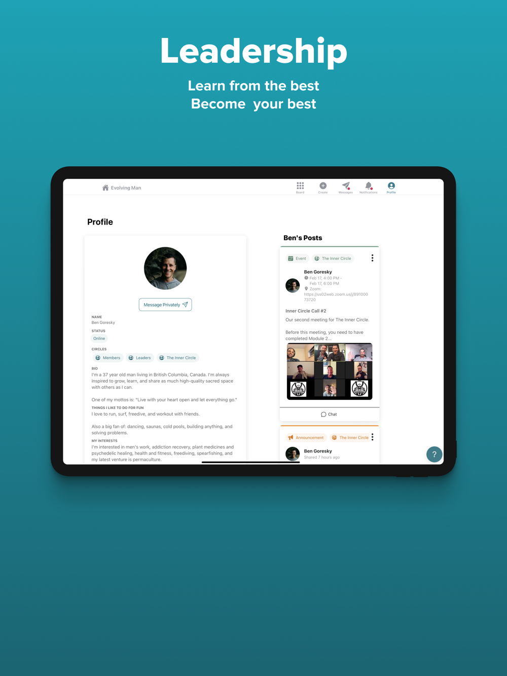 Evolving Man is an app for men committed to stepping into their mature masculine power, finding freedom, and connecting with a community of likeminded men.