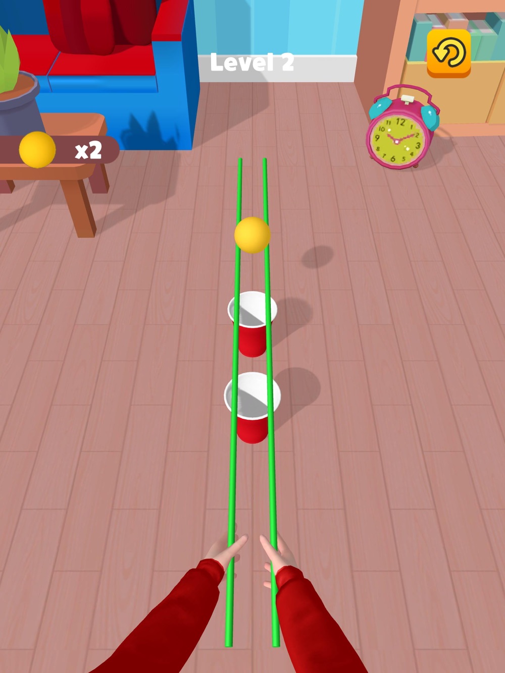 Drop the rolling ball into the red cup, press and hold the screen to move left and right, you can loosen and close the pole, easy to use, difficult to master, let's try it.