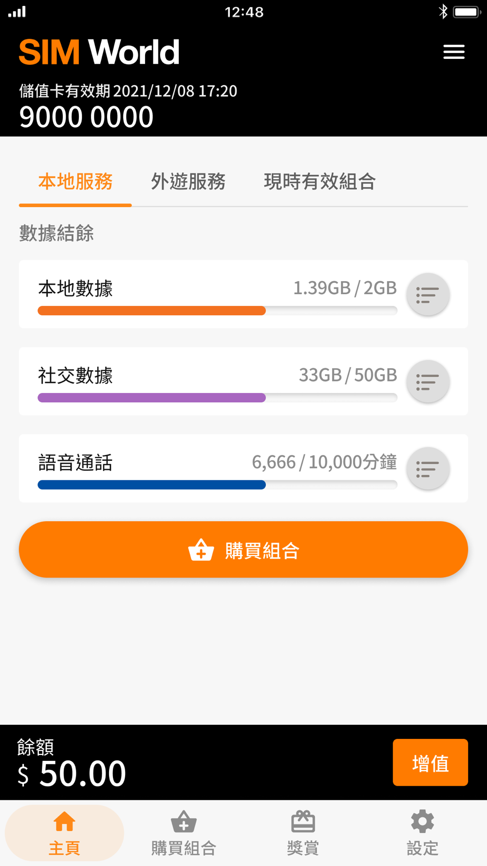 透過全新SIM World App,客戶可以簡便地管理儲值卡。彈指之間即可查閱儲值卡用量、購買服務組合及即時增值,只要一App在手,即可享受儲值卡的升級用戶體驗。