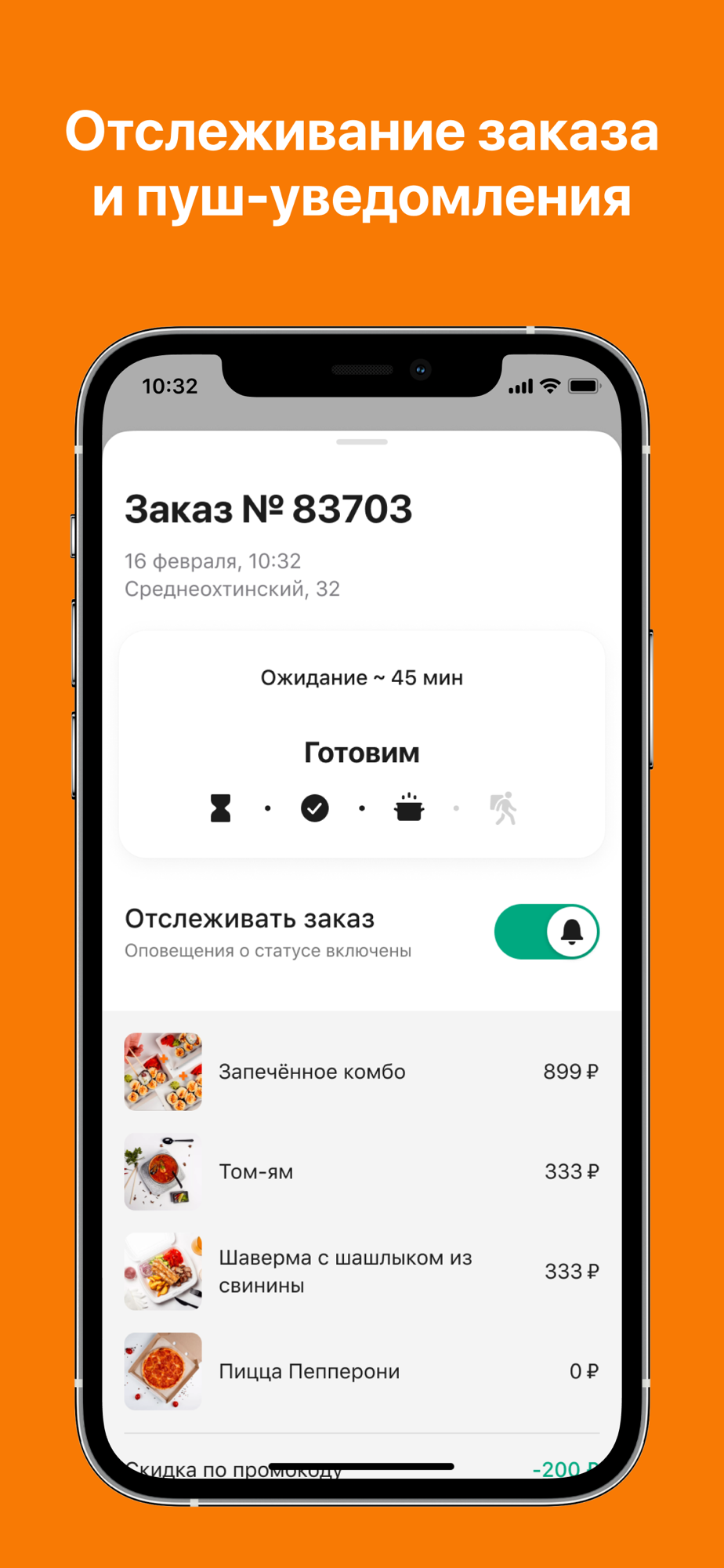 Для вашего удобства история заказов и адресов сохраняется в личном кабинете. Повторить любимый заказ можно в один клик. Там же вы можете проверить баланс накопленных бонусов.