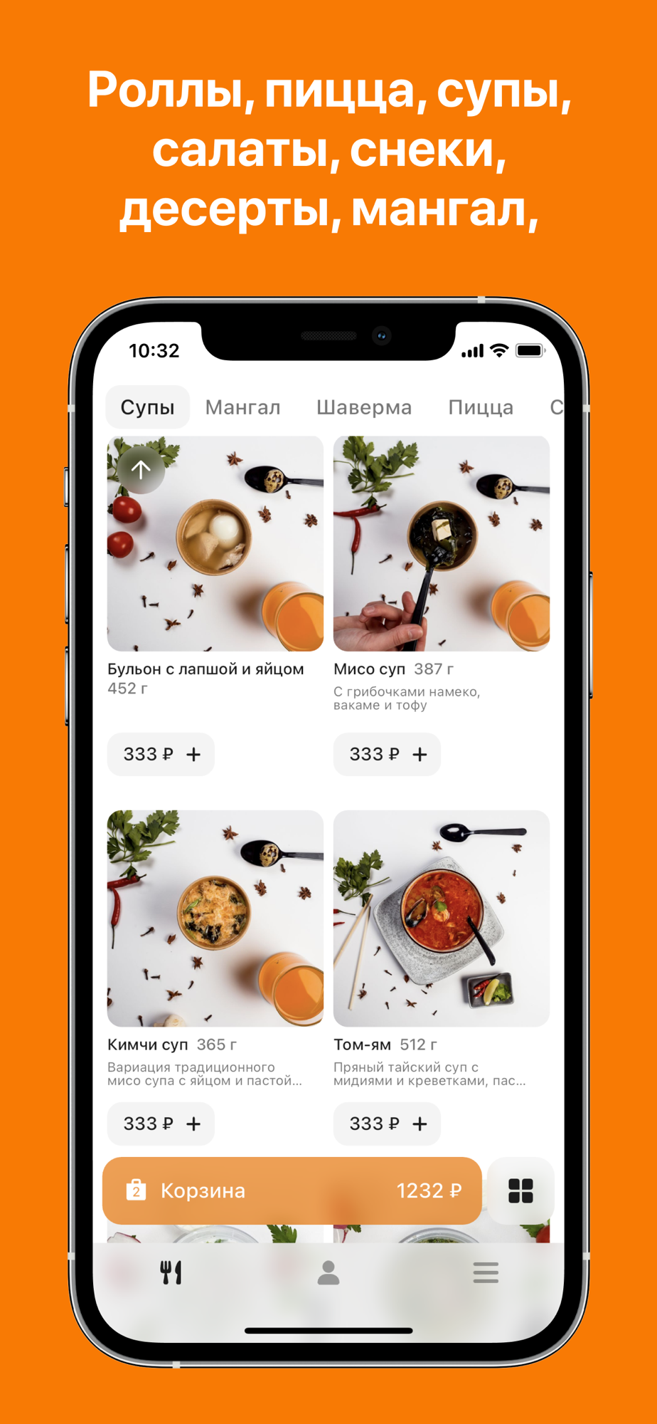 Полный список блюд доступен в приложении: подробное описание, калорийность, вес каждой позиции. С помощью удобных модификаторов вы можете создать собственный уникальный рецепт: добавьте к выбранному блюду топинги и соуса по вкусу. Выгодные комбо для компаний и сезонные предложения каждый месяц.