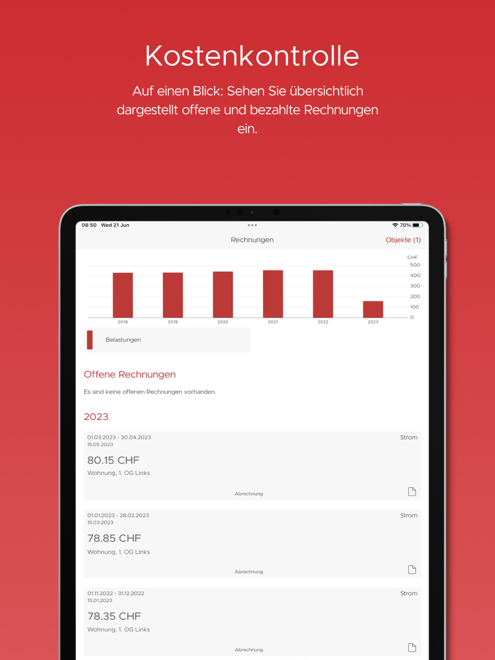 - Übersicht über bezahlte und offene Rechnungen = volle Kostenkontrolle