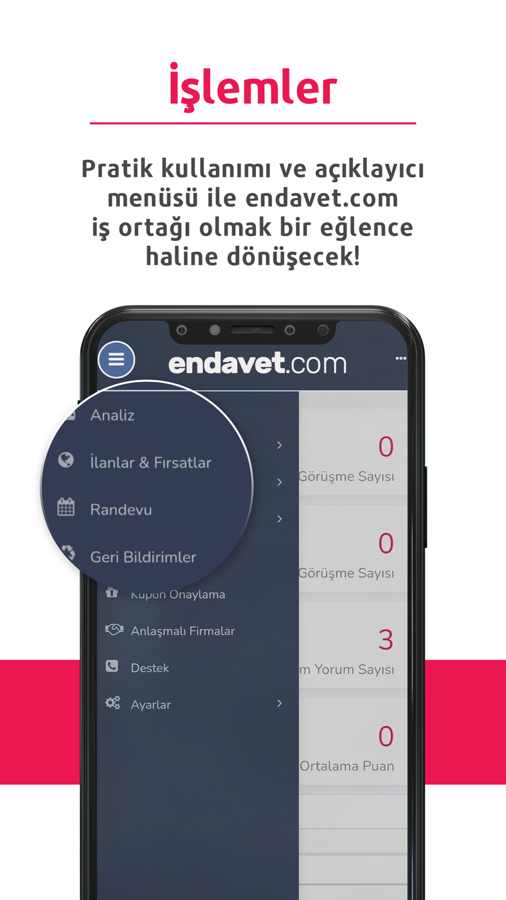 Milyonlarca endavet.com kullanıcısına ulaşma imkânı sağlayan İş Ortağım sayesinde firmanızı, en kolay ve en etkili bir biçimde tanıtırken kendinize ait kampanyaları, indirimleri ve fırsatları müşterilerinizle buluşturabileceksiniz. Endavet.com İş ortağım ile birlikte internet üzerindeki aramalarda görünürlüğünüz artarken firmanızı en etkili şekilde gösterme ayrıcalığını da yakalamış olacaksınız. Böylelikle sektörünüze dair aramalarda veya firma aramalarında öne çıkarak işinize değer katmış olacaksınız.