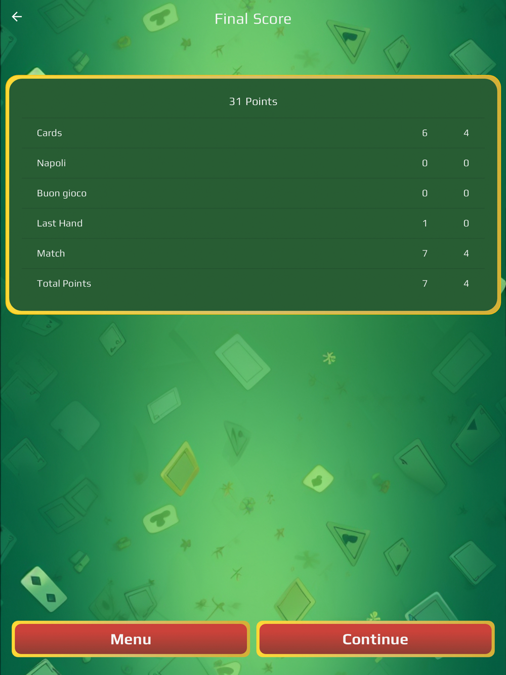 - Scegli partita singola o 31 punti.