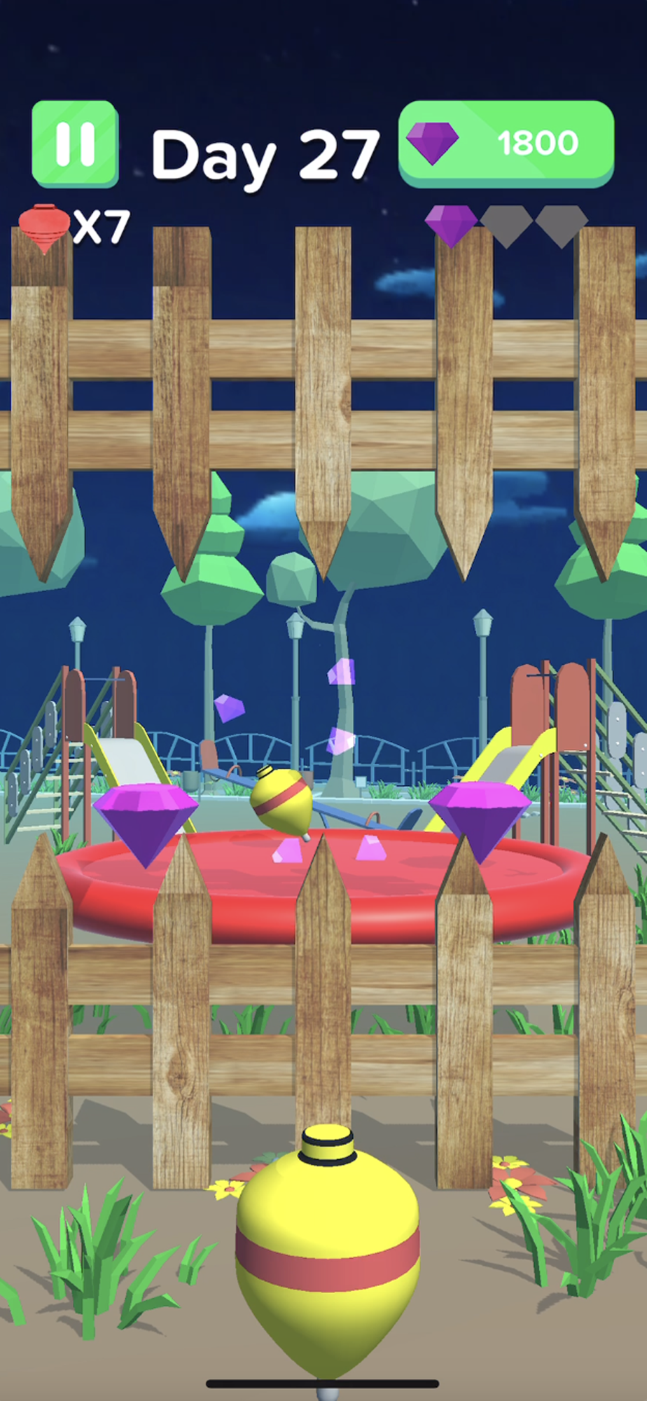 Prepare to enter the most immersive spinner games experience of your lifetime! This hyper casual top spinner game features dynamic aim and hit target levels, where you will face impossible challenges. On the screen you will be viewing few rewards in the shape of gems or balloons. You have to swipe the spinning top in a way that to make it toss and land on the target. You get three chances to collect rewards. No margin of error!
