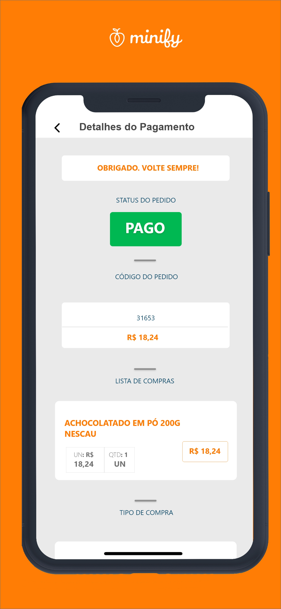 Agora você consegue fazer as compras do dia pertinho de você, de forma rápida, inteligente e econômica com MINIFY.