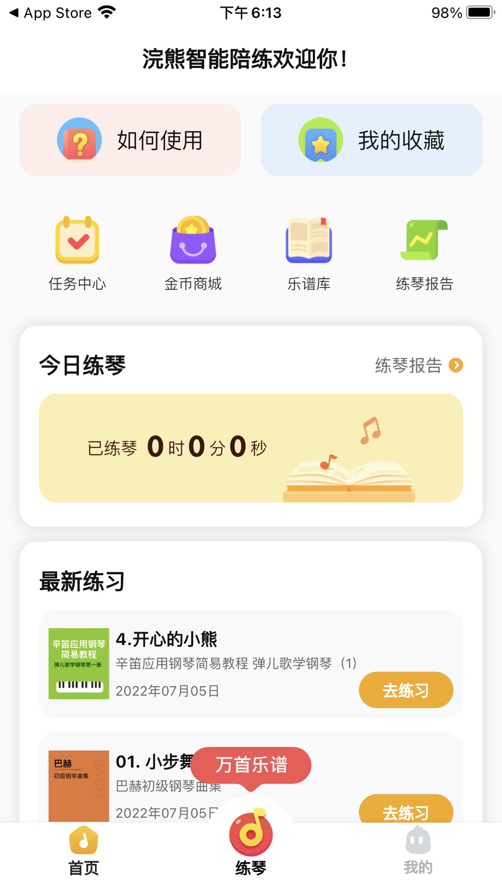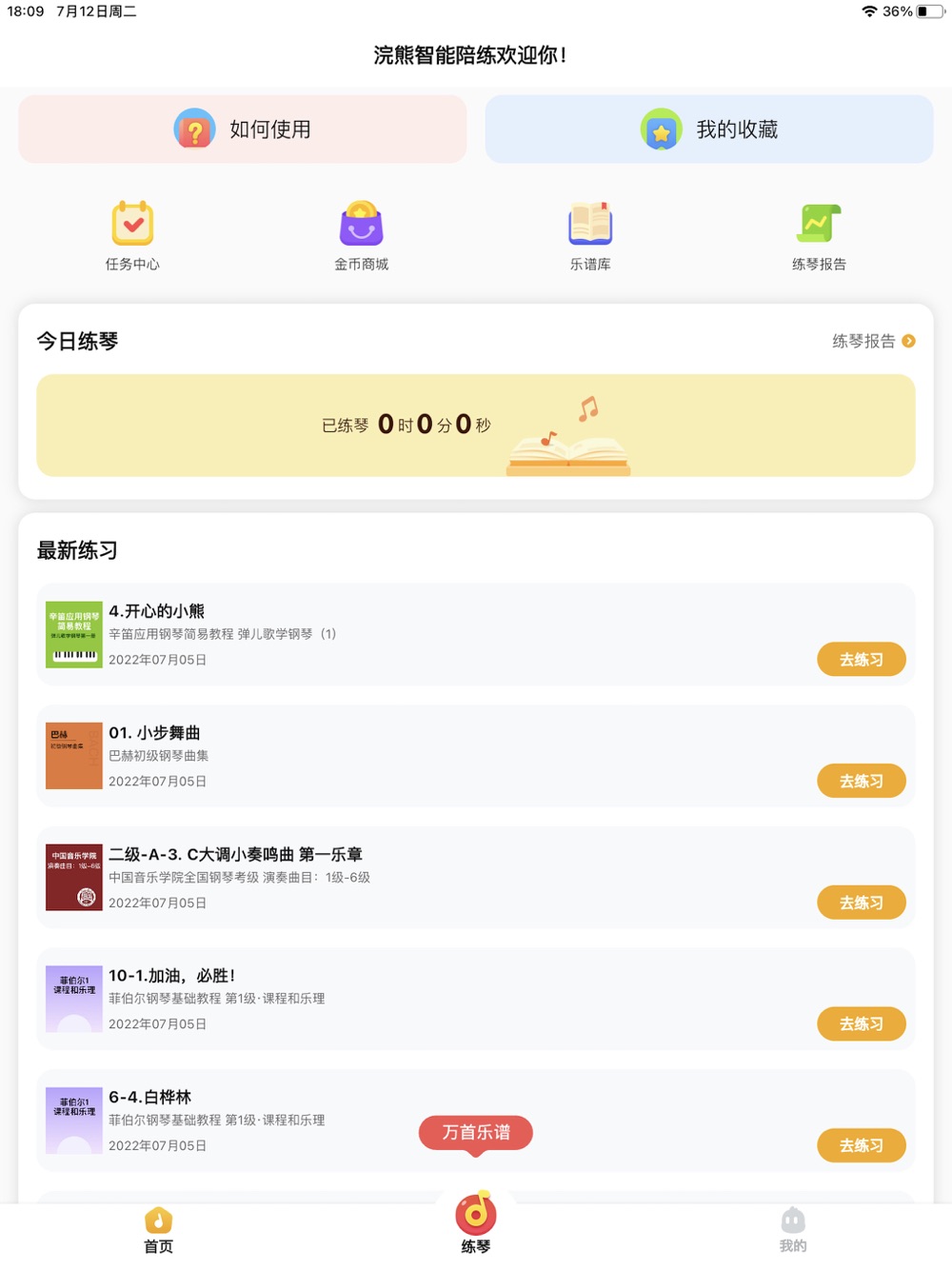 浣熊AI陪练,不需要预约,24小时随时可以练琴,培养练琴习惯!