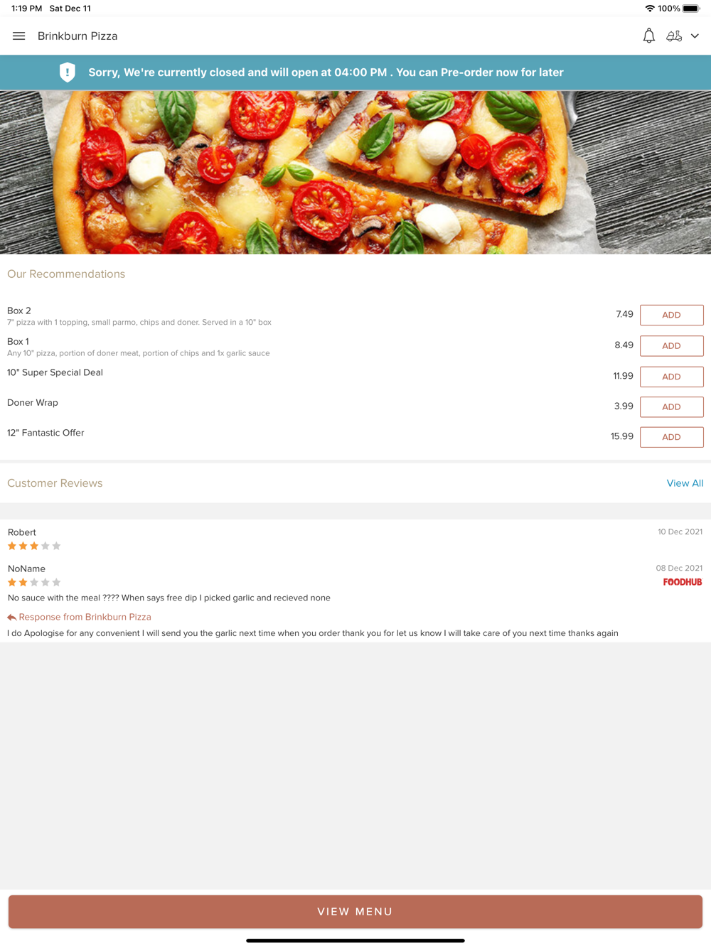 Thank you for visiting Brinkburn Pizza in Darlington. We hope you enjoy our online ordering app and your food.