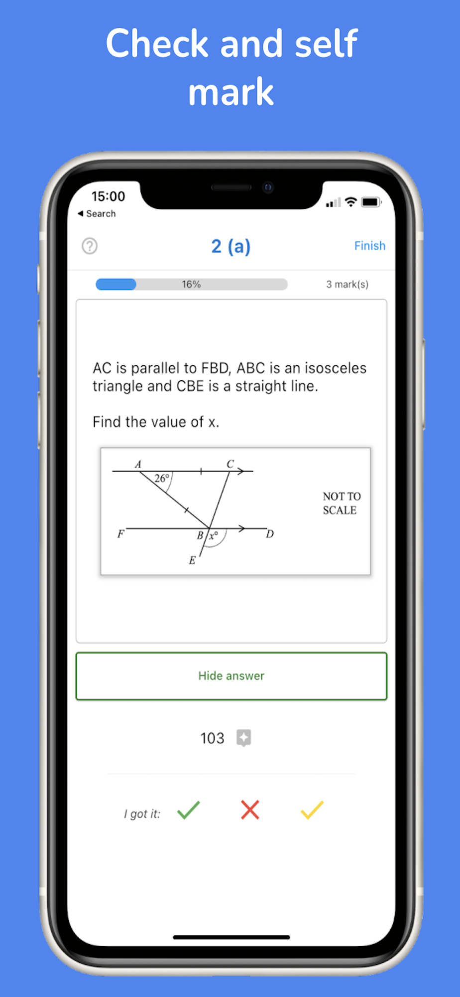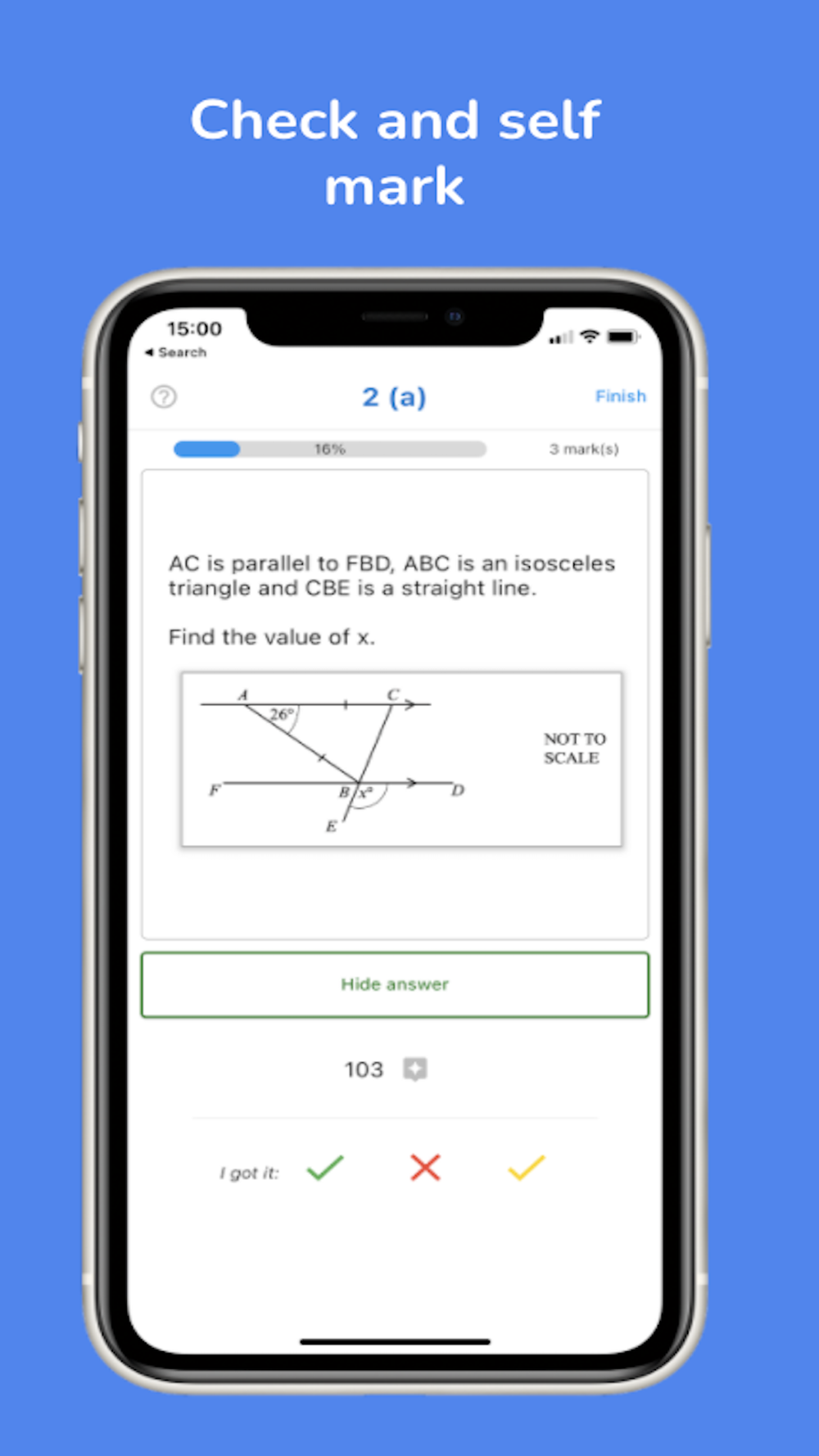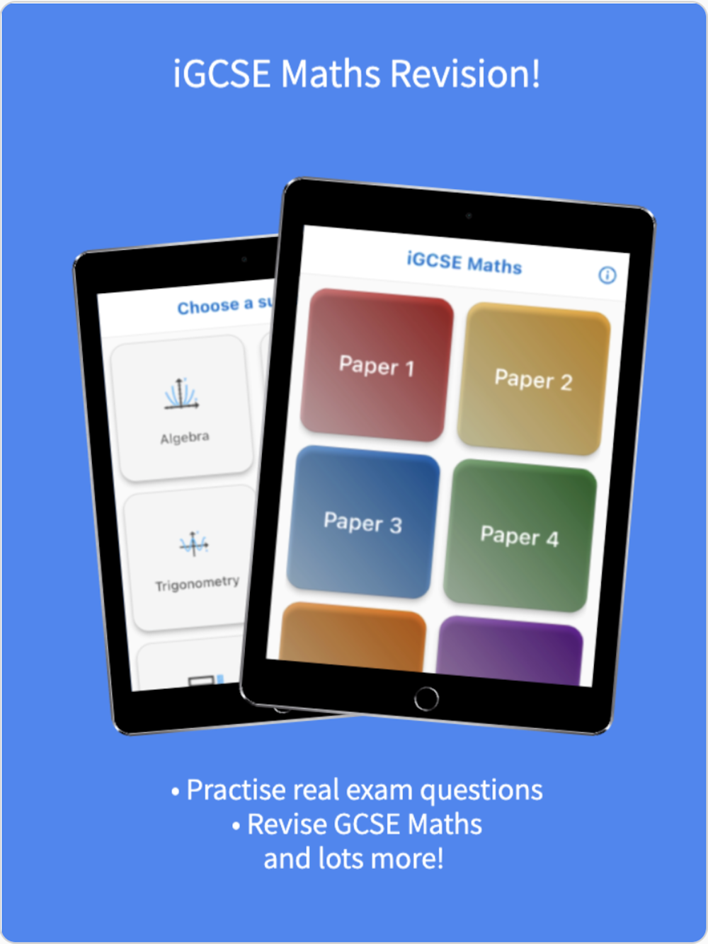 An iGCSE Maths exam preparation app to practice exam standard questions on the go and offline, self mark and receive your grade. Practice until you get an A!