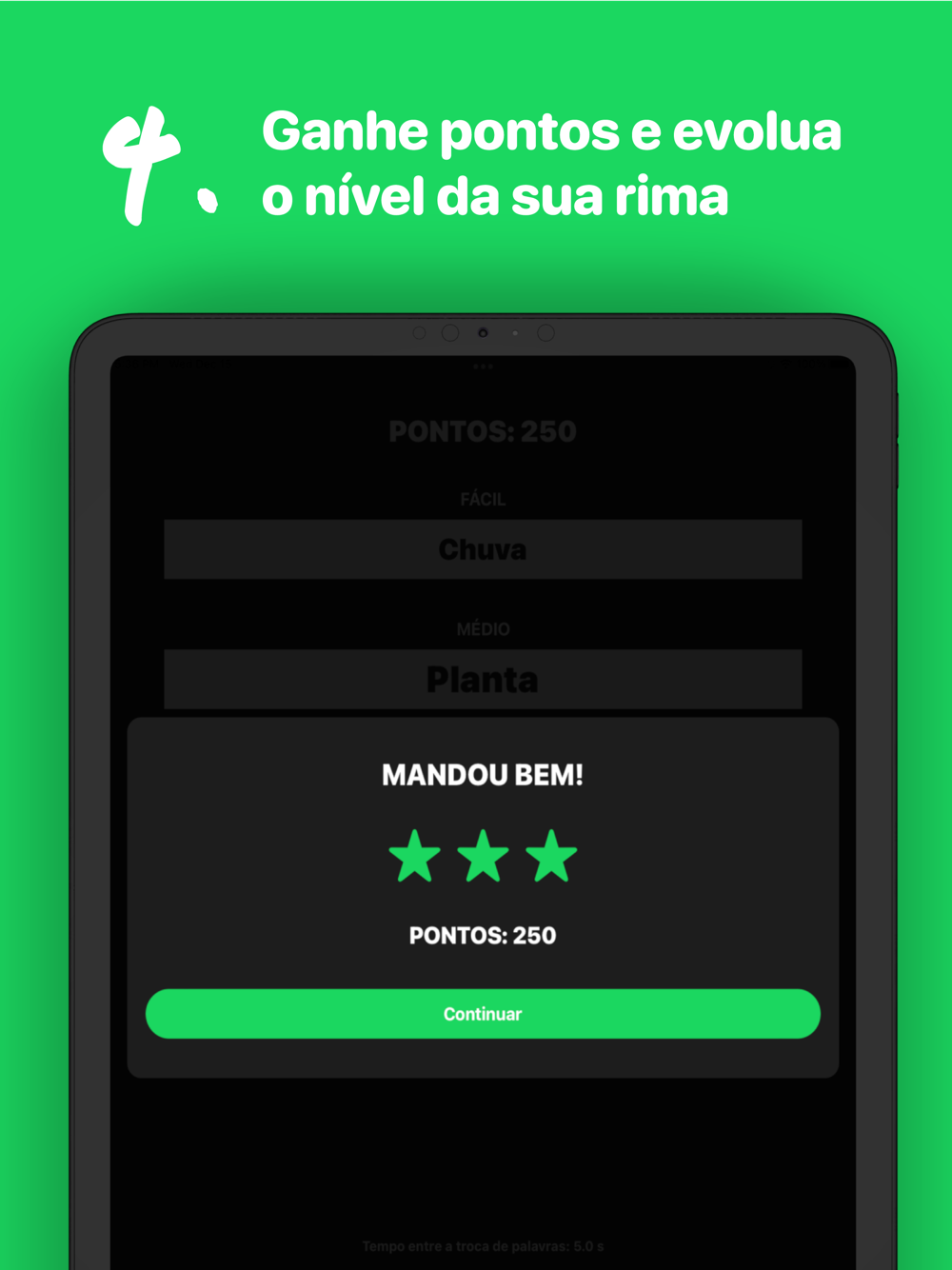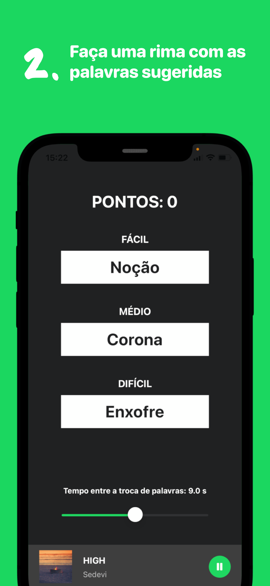 Escolha um beat e receba sugestões de palavras fáceis, médias e difíceis para rimar. Nossa tecnologia da pesada vai reconhecer a sua voz e descobrir quais palavras que você usou e vai te dar pontos. Quanto mais palavras usadas, maior a sua pontuação. Será que você consegue?