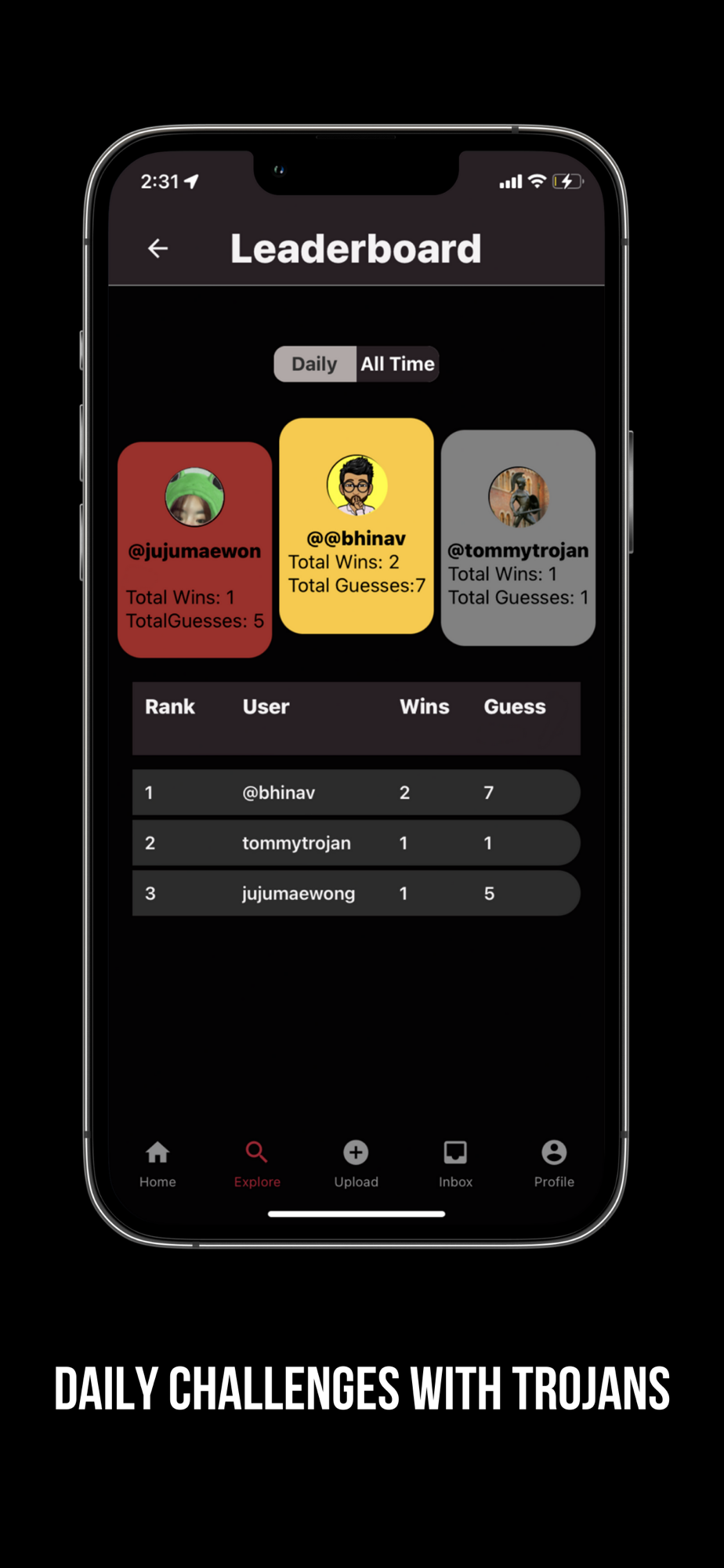 - Get involved in daily challenges to engage with fellow Trojans and make your way through the leaderboard